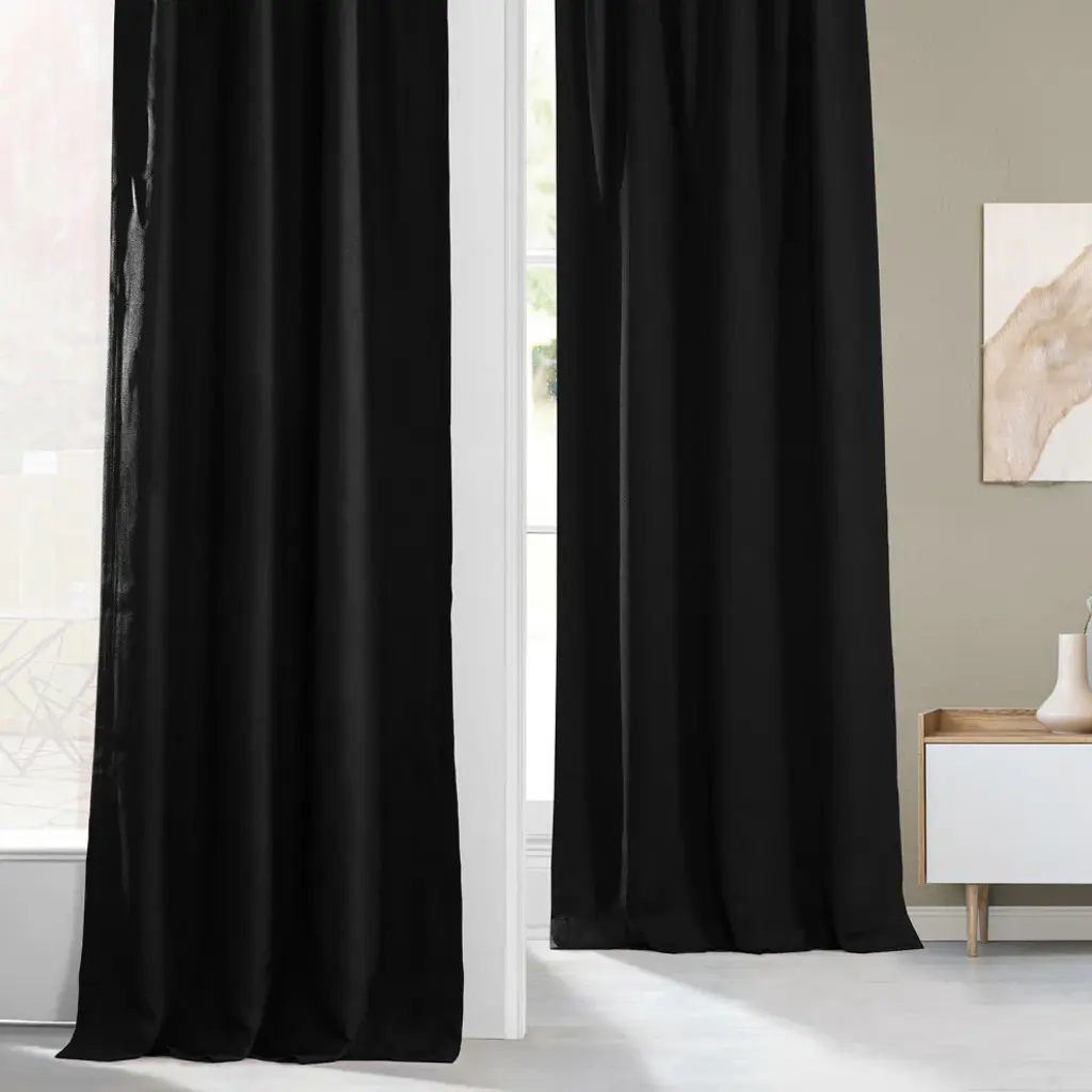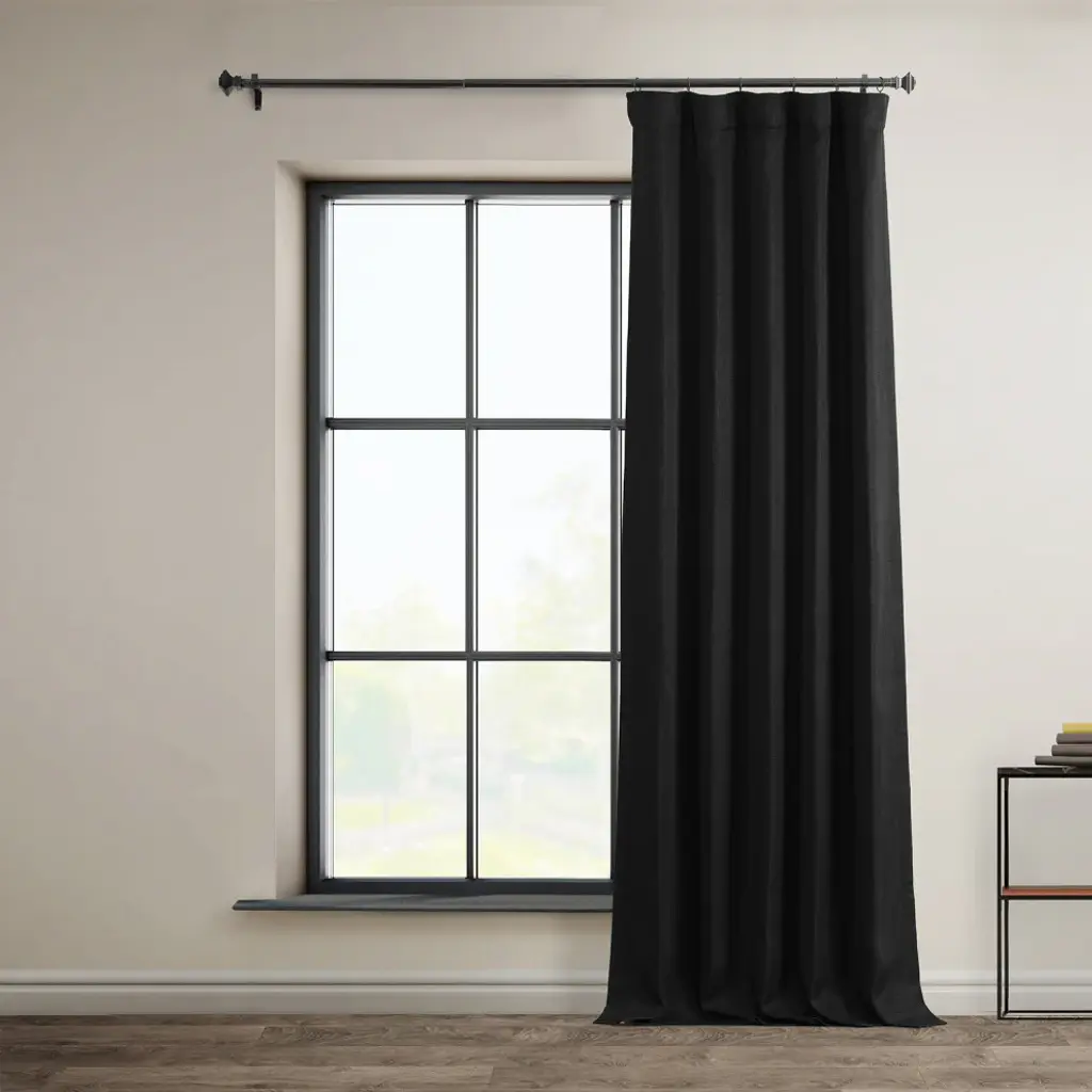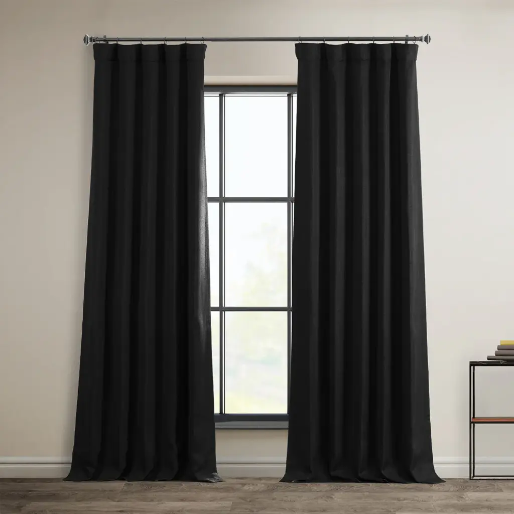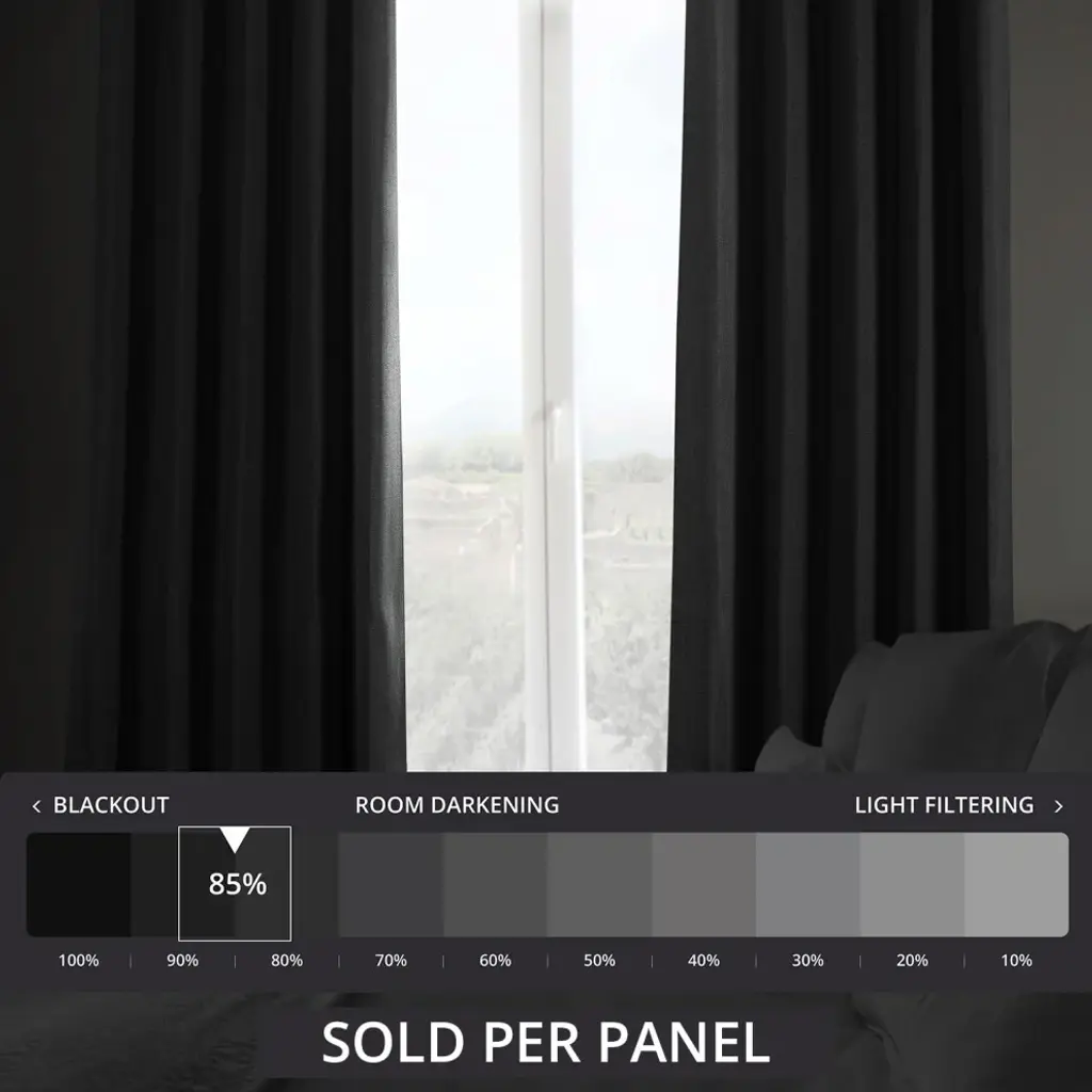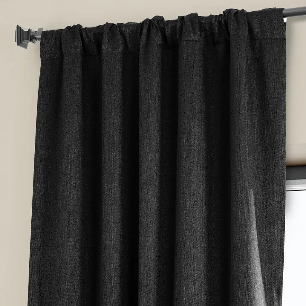 Faux Linen Darkening Curtain Single Panel, Essential Black, 50"x84"