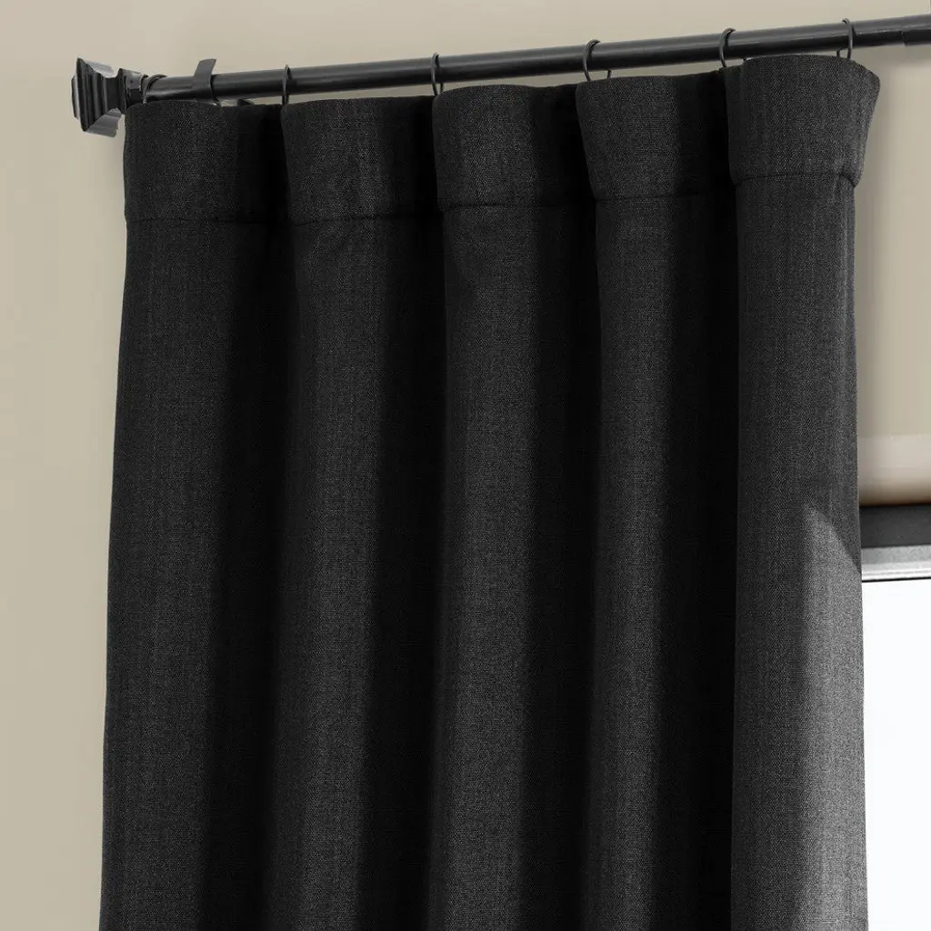 Our Faux Linen Room Darkening Curtain feature rich woven textures in modern designer colors for every style. These heavy faux linen panels have significant room darkening properties and a weighted hem to hang nicely and keep them in place. These curtains have our most versatile header, a rod pocket with back tabs and hook belt. There is a 3" pole pocket in the header and back tab loops that will accommodate up to a 1.5" diameter curtain rod with no additional hardware. Additionally, these panels can be attached to curtain rings from clips or by running an S-shaped drapery pin through the back of the header and hanging the drapery pin through an eyelet on the rings. These curtains are sold with no hardware like rings or hooks. We try to provide the most accurate digital images possible. Color may appear slightly different from one screen to another based on differences in computer monitors, brightness, and other selected settings so there may be variations in color between the actual product and the way it appears online.