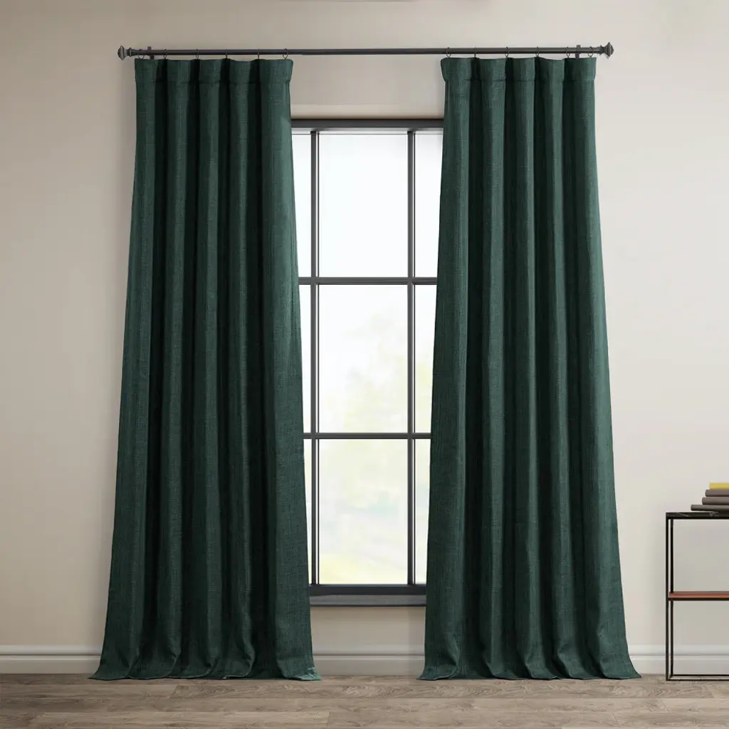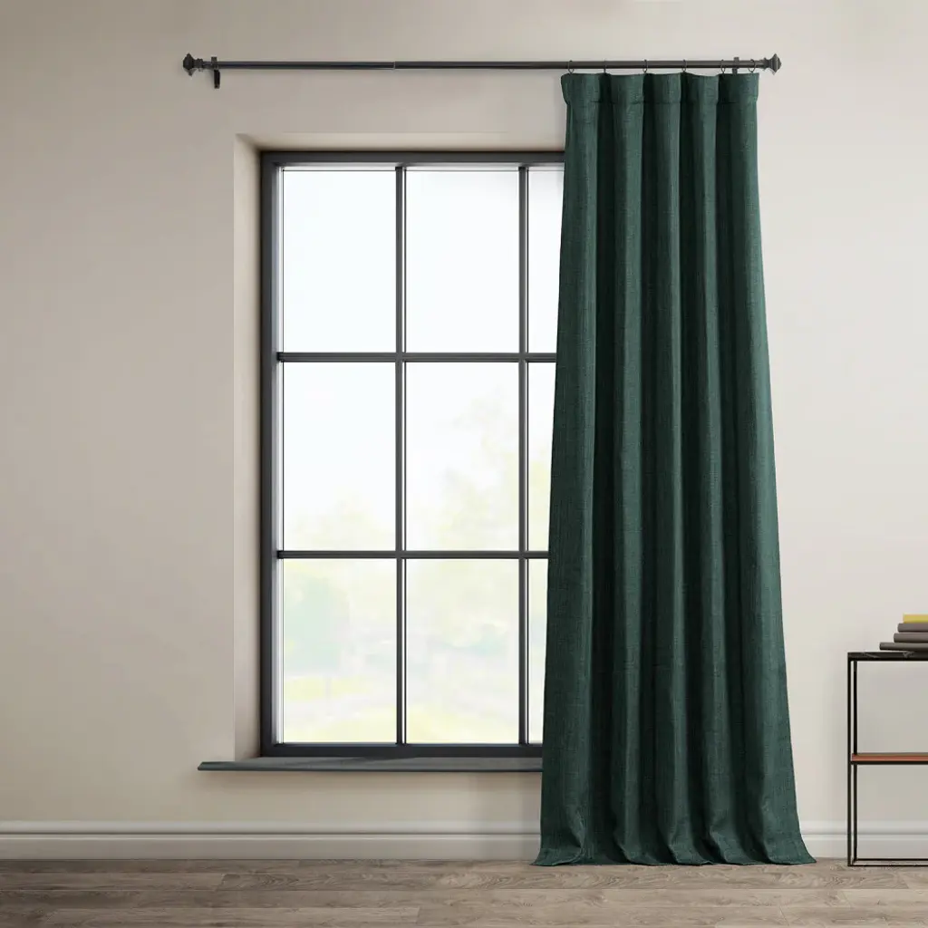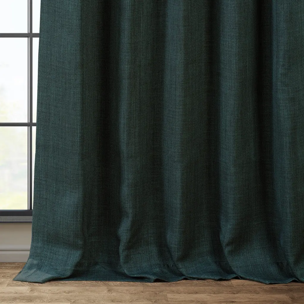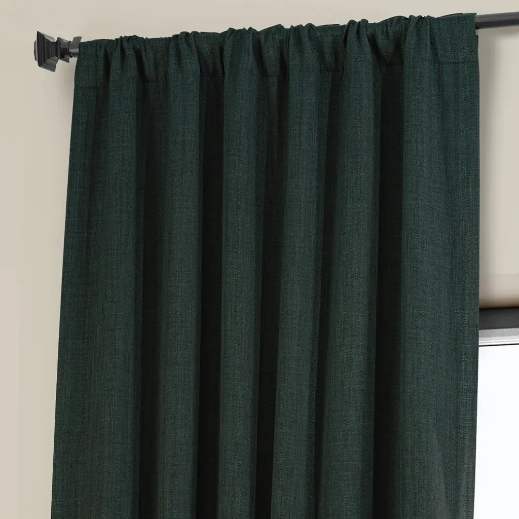 Faux Linen Darkening Curtain Single Panel, Focal Green, 50"x84"