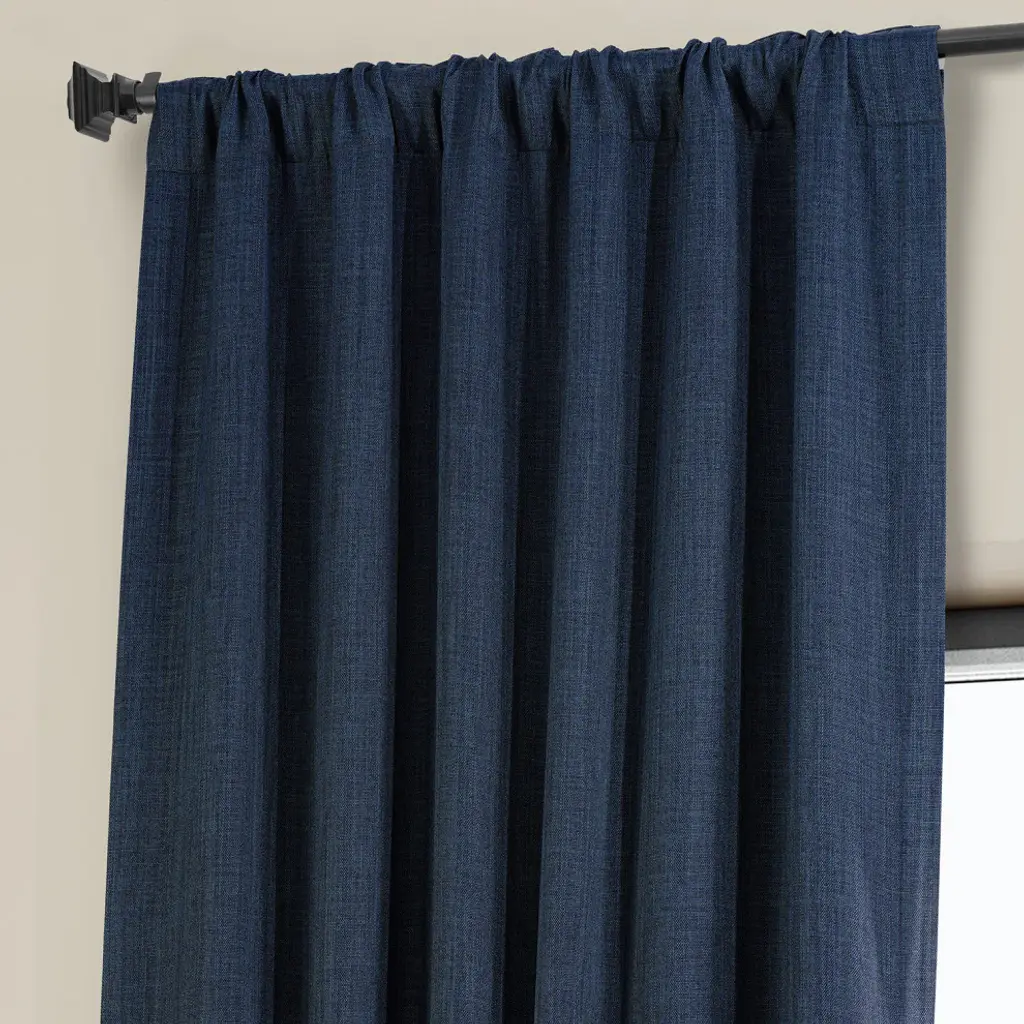 Faux Linen Darkening Curtain Single Panel, Indigo, 50"x108"