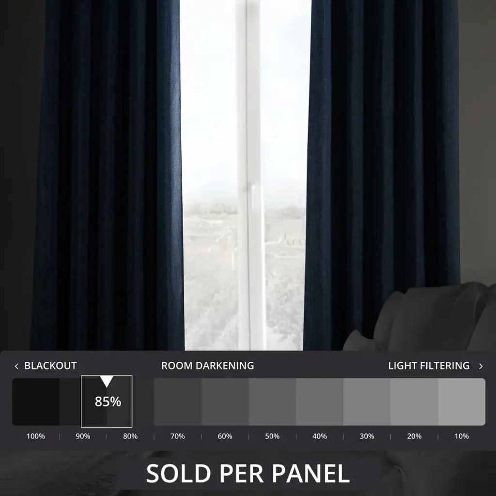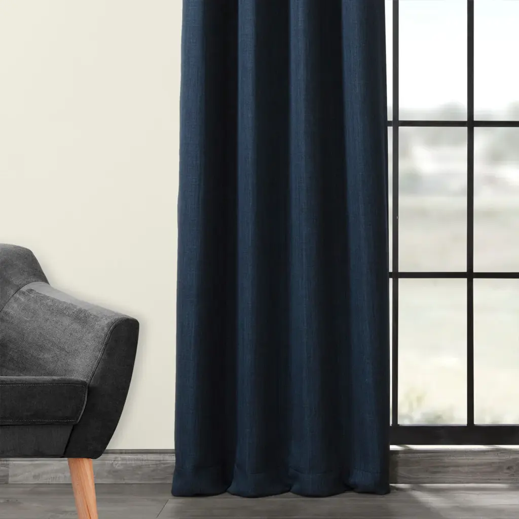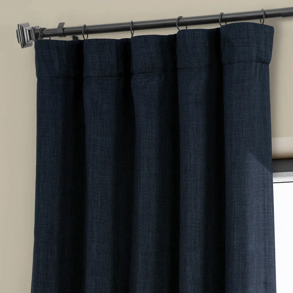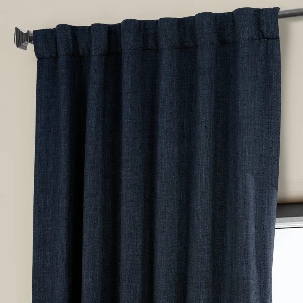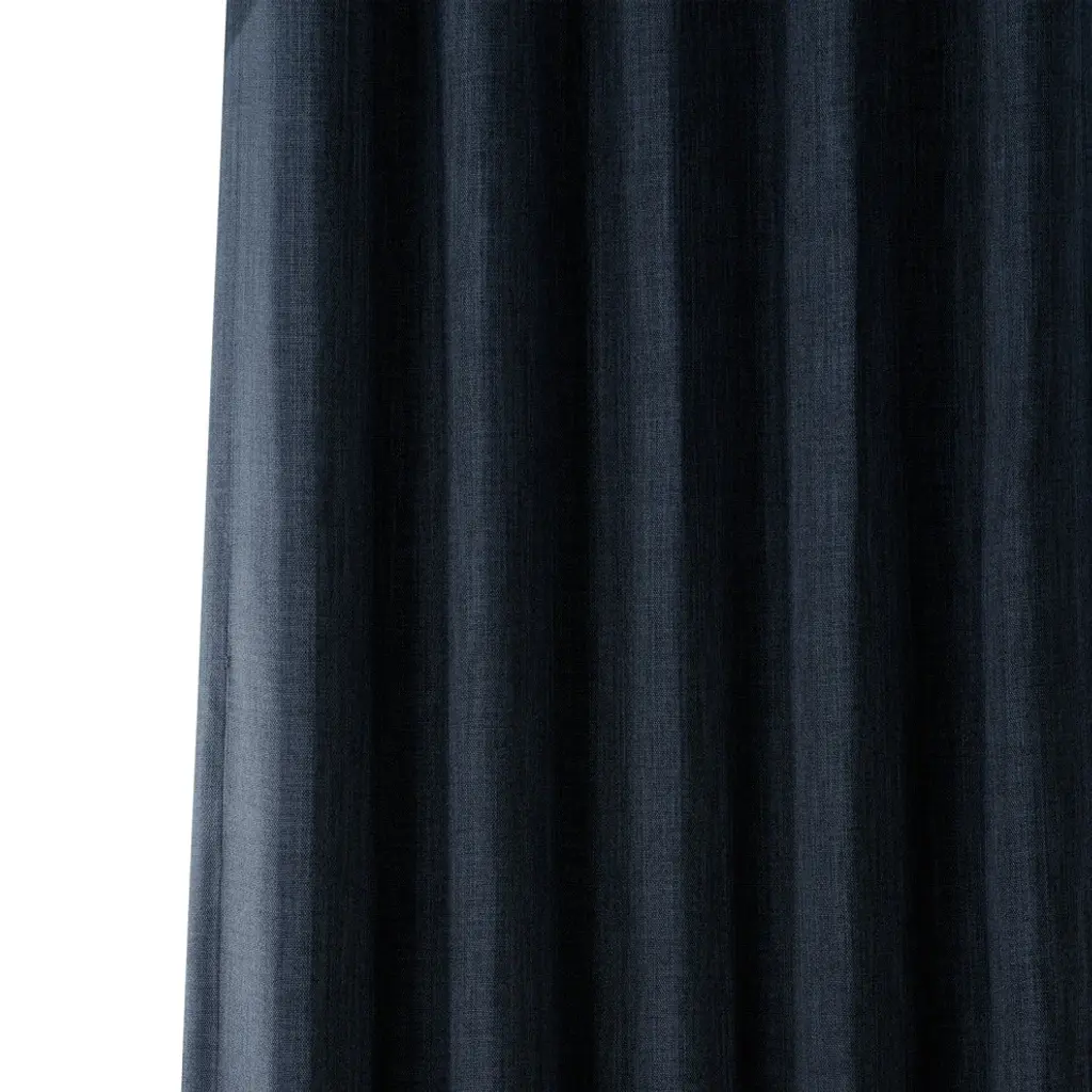 Faux Linen Darkening Curtain Single Panel, Nightfall Navy, 50"x108"