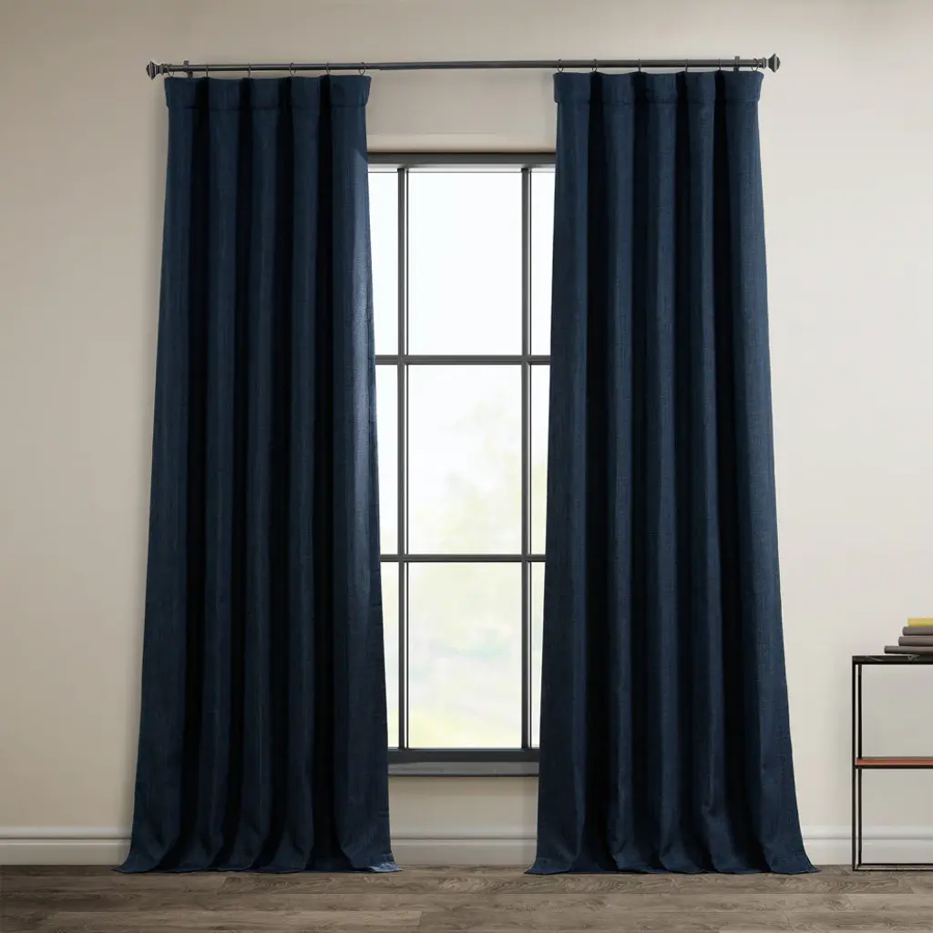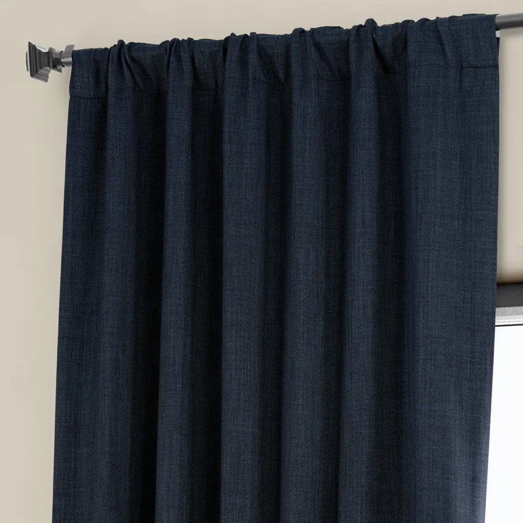 Faux Linen Darkening Curtain Single Panel, Nightfall Navy, 50"x96"