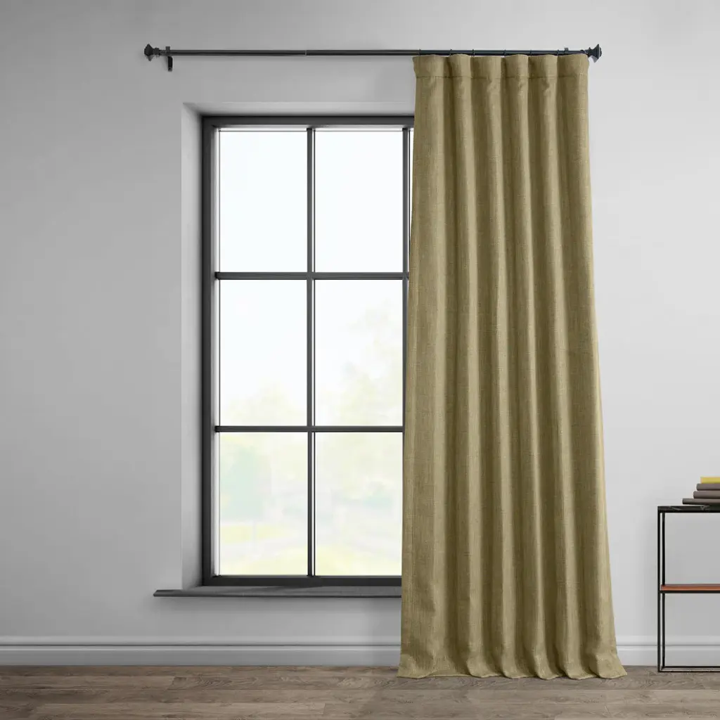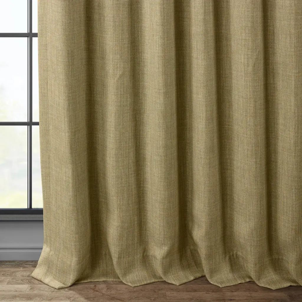 Faux Linen Darkening Curtain Single Panel, Nomad Tan, 50"x108"
