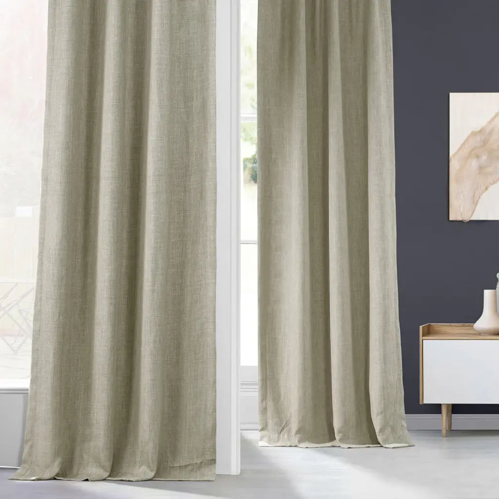 Now you do not have to decide between casual elegance and practicality. With our Faux Linen Blackout curtains, you can have it all. The face fabric is our easy care Faux Linen in a host of great colors, from dark like Iris Red and Dutch Cocoa to lights like Thatched Tan and Oyster