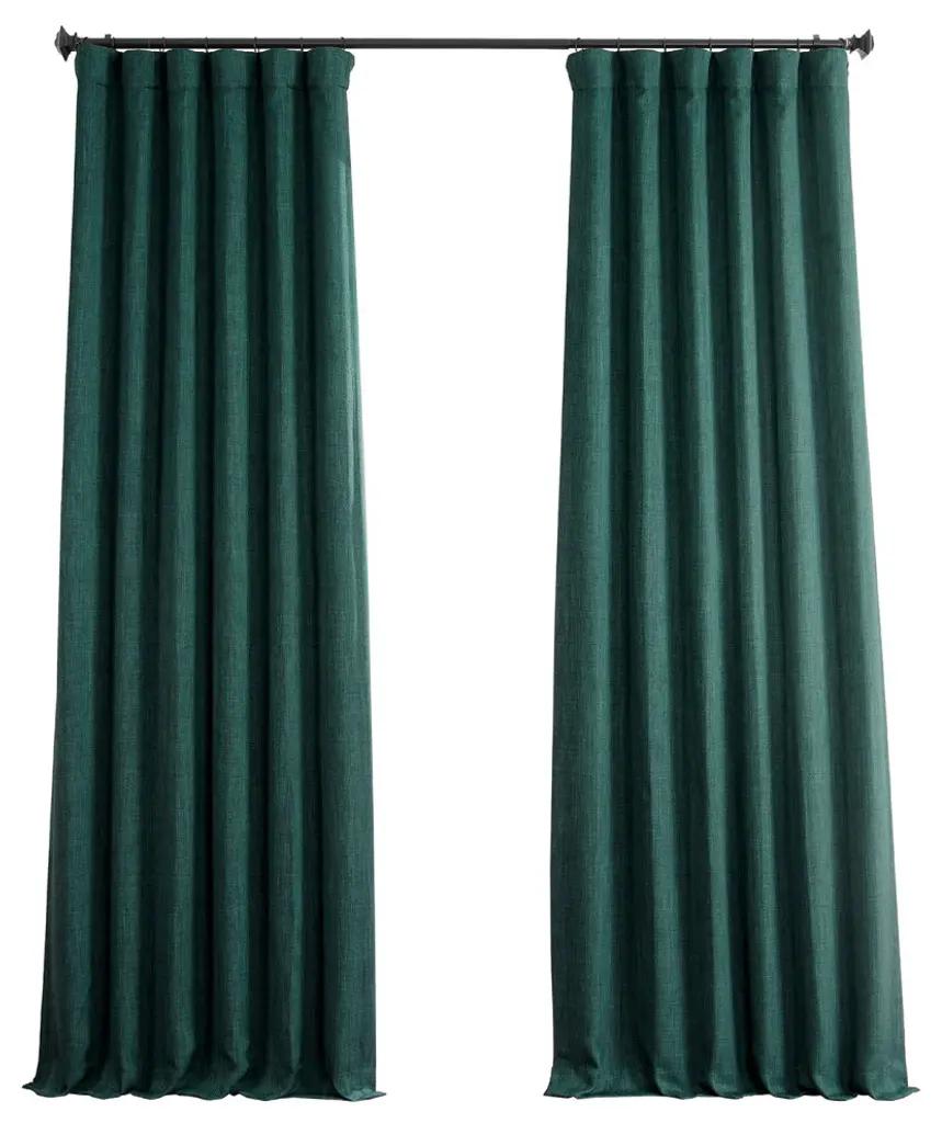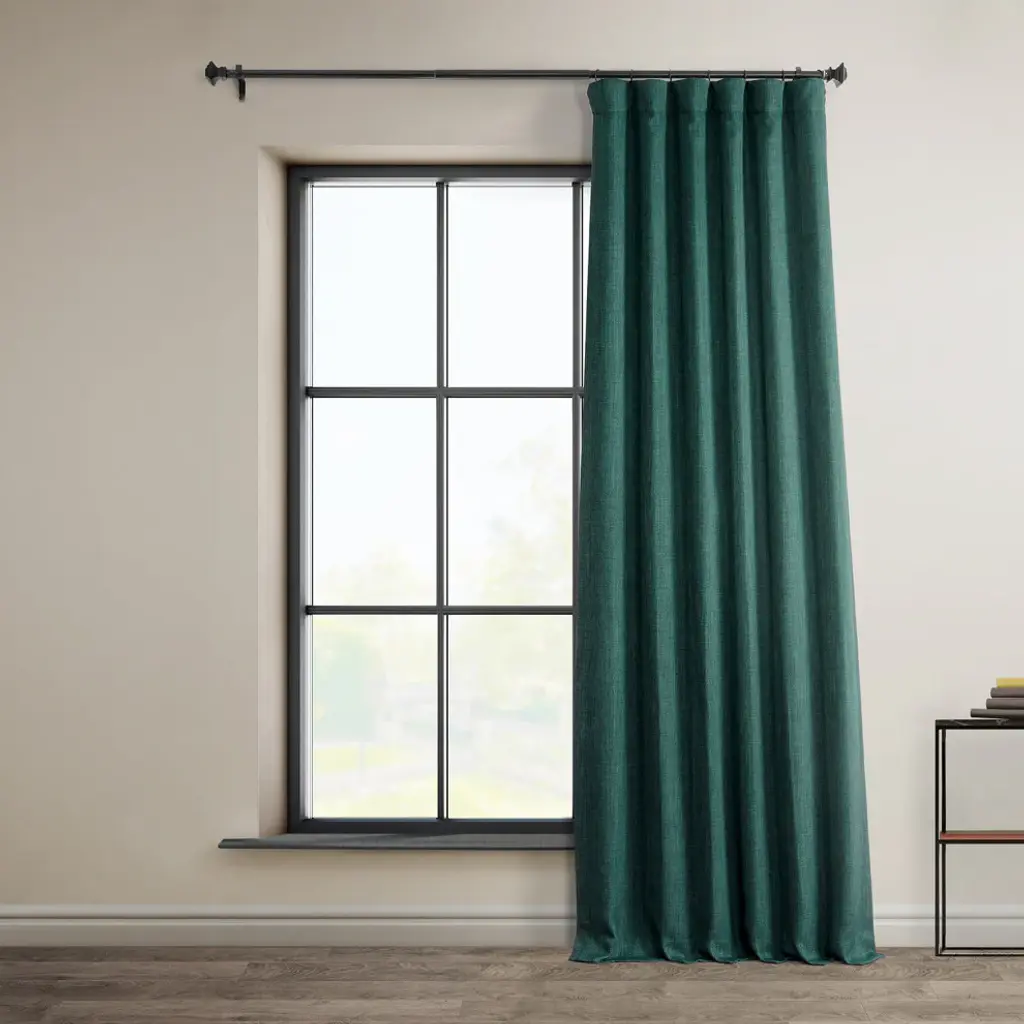 Faux Linen Darkening Curtain Single Panel, Slate Teal, 50"x120"