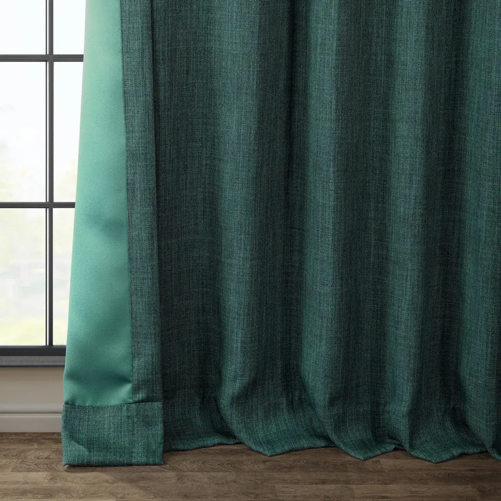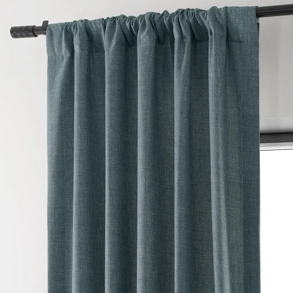 Faux Linen Darkening Curtain Single Panel, Slate Teal, 50"x96"