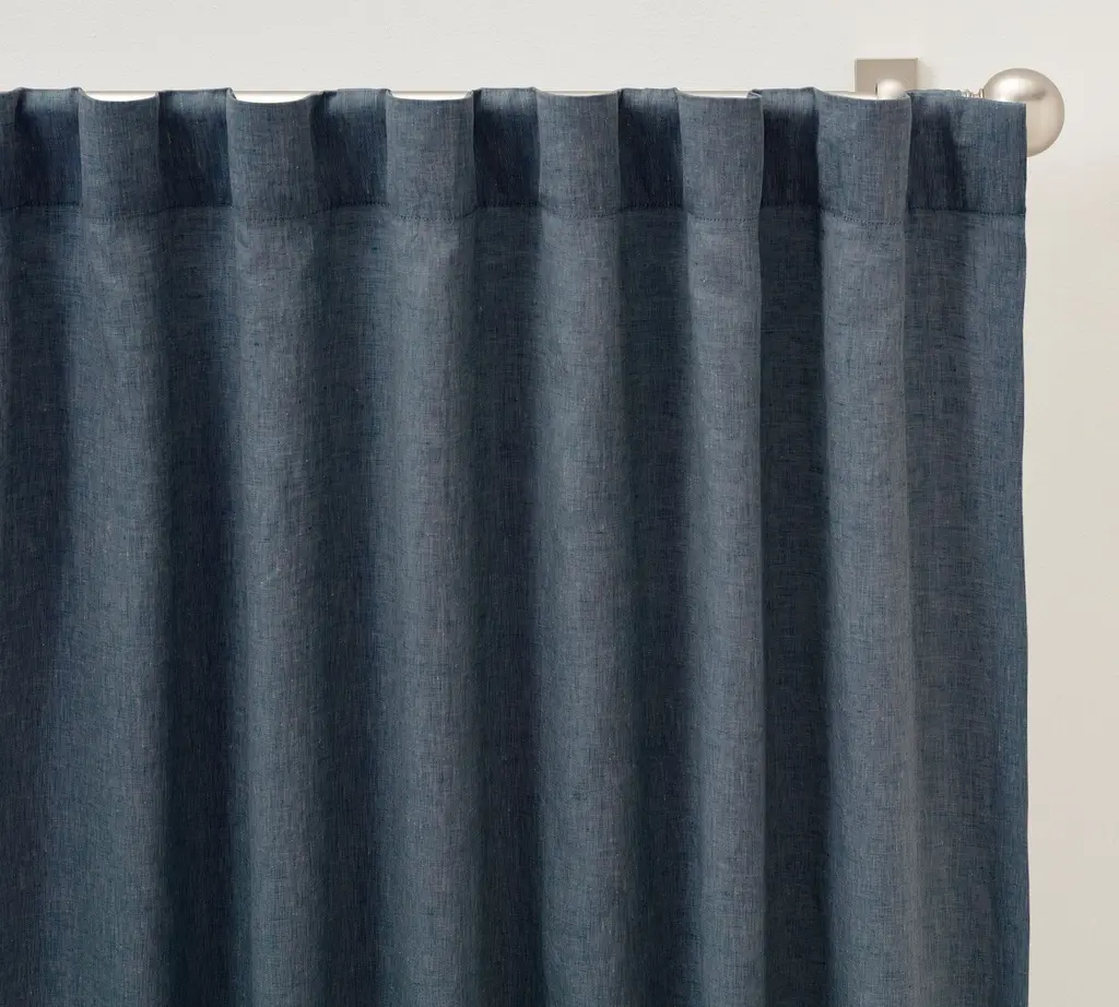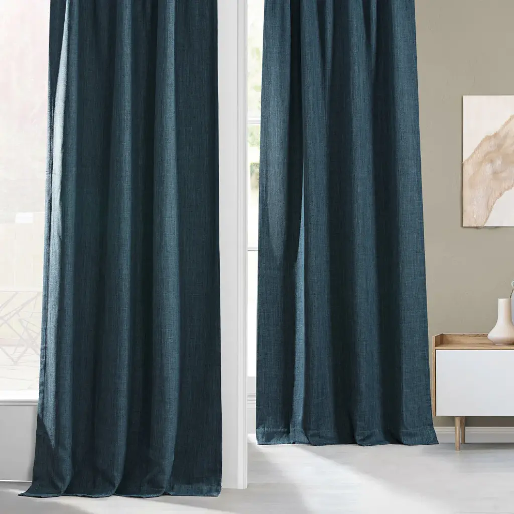 Our Faux Linen Room Darkening Curtain feature rich woven textures in modern designer colors for every style. These heavy faux linen panels have significant room darkening properties and a weighted hem to hang nicely and keep them in place. These curtains have our most versatile header, a rod pocket with back tabs and hook belt. There is a 3" pole pocket in the header and back tab loops that will accommodate up to a 1.5" diameter curtain rod with no additional hardware. Additionally, these panels can be attached to curtain rings from clips or by running an S-shaped drapery pin through the back of the header and hanging the drapery pin through an eyelet on the rings. These curtains are sold with no hardware like rings or hooks. We try to provide the most accurate digital images possible. Color may appear slightly different from one screen to another based on differences in computer monitors, brightness, and other selected settings so there may be variations in color between the actual product and the way it appears online.