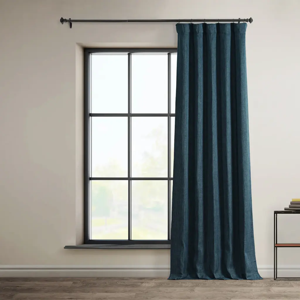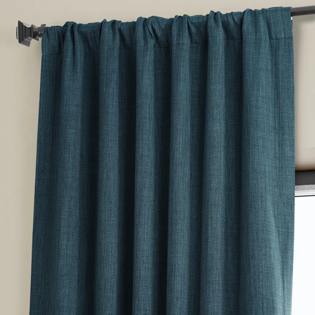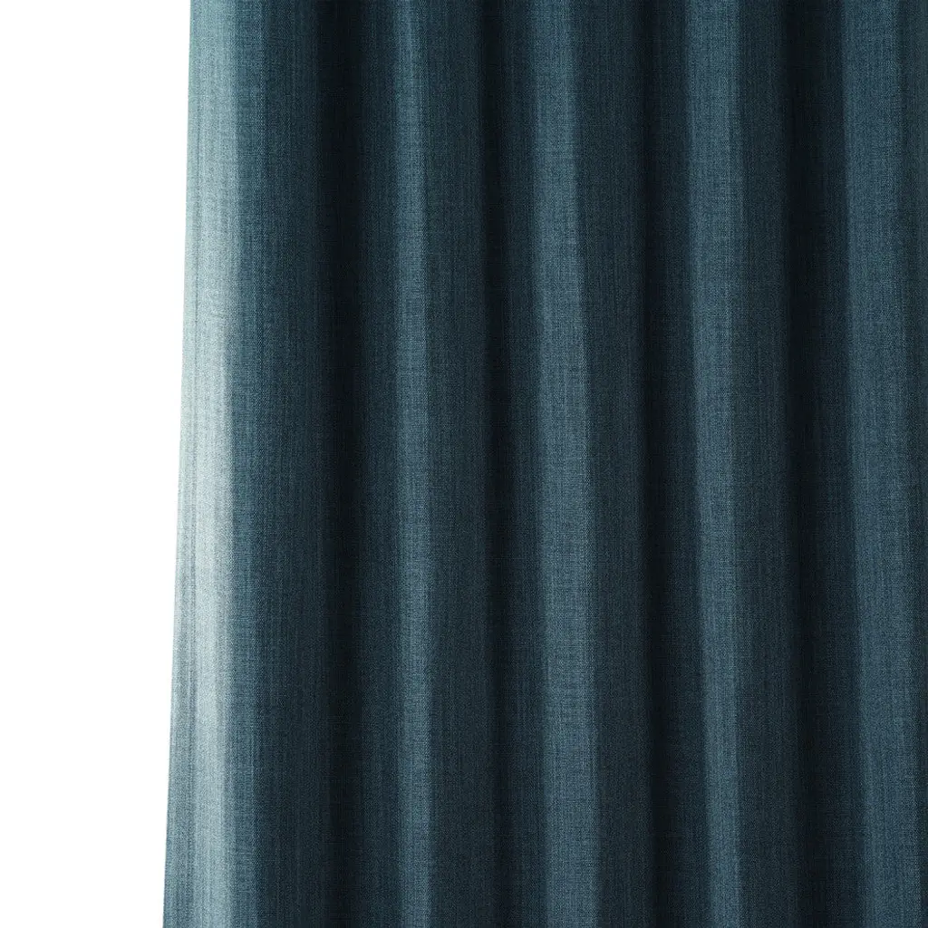 Faux Linen Darkening Curtain Single Panel, Story Blue, 50"x84"