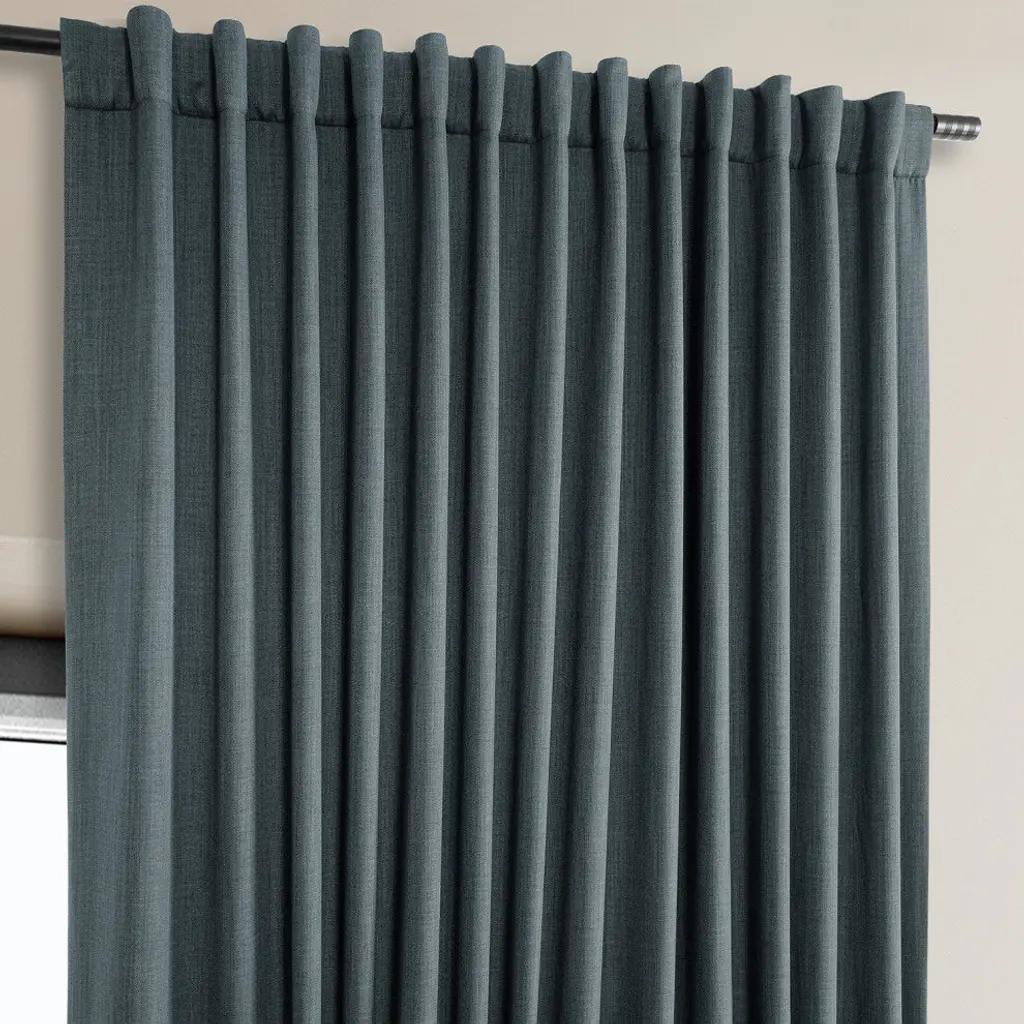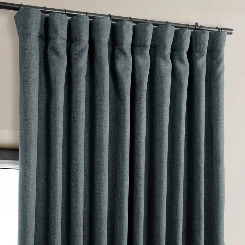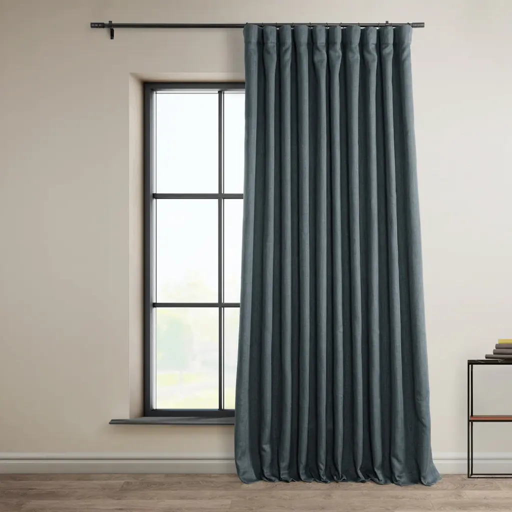 Faux Linen Extra Wide Curtain Panel, Reverie Blue, 100x96