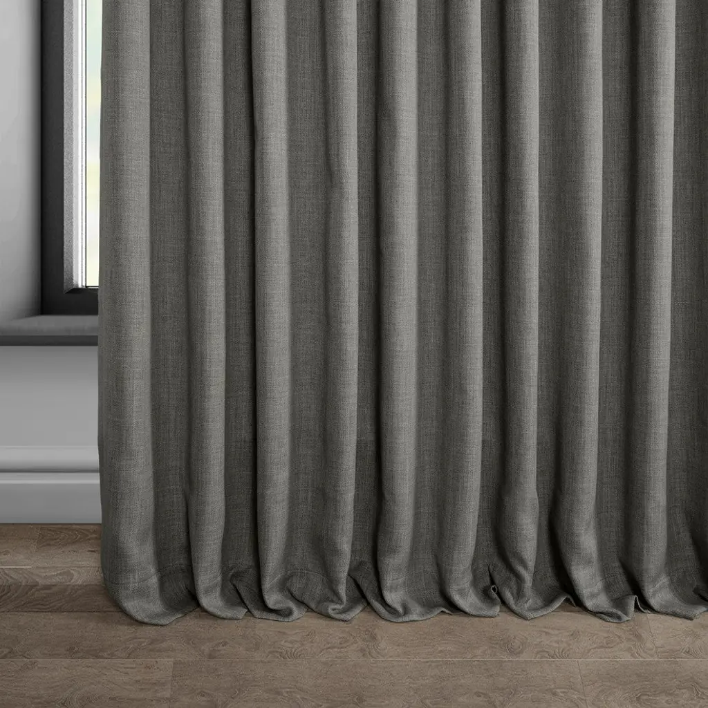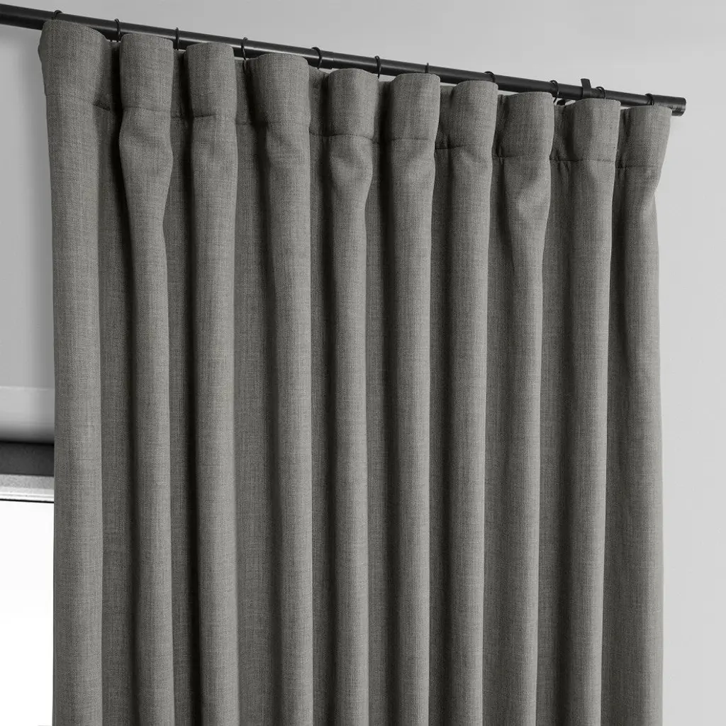 Faux Linen Extra Wide Room Darkening Curtain Single Panel, Blazer Grey, 100x120