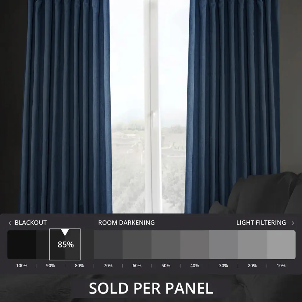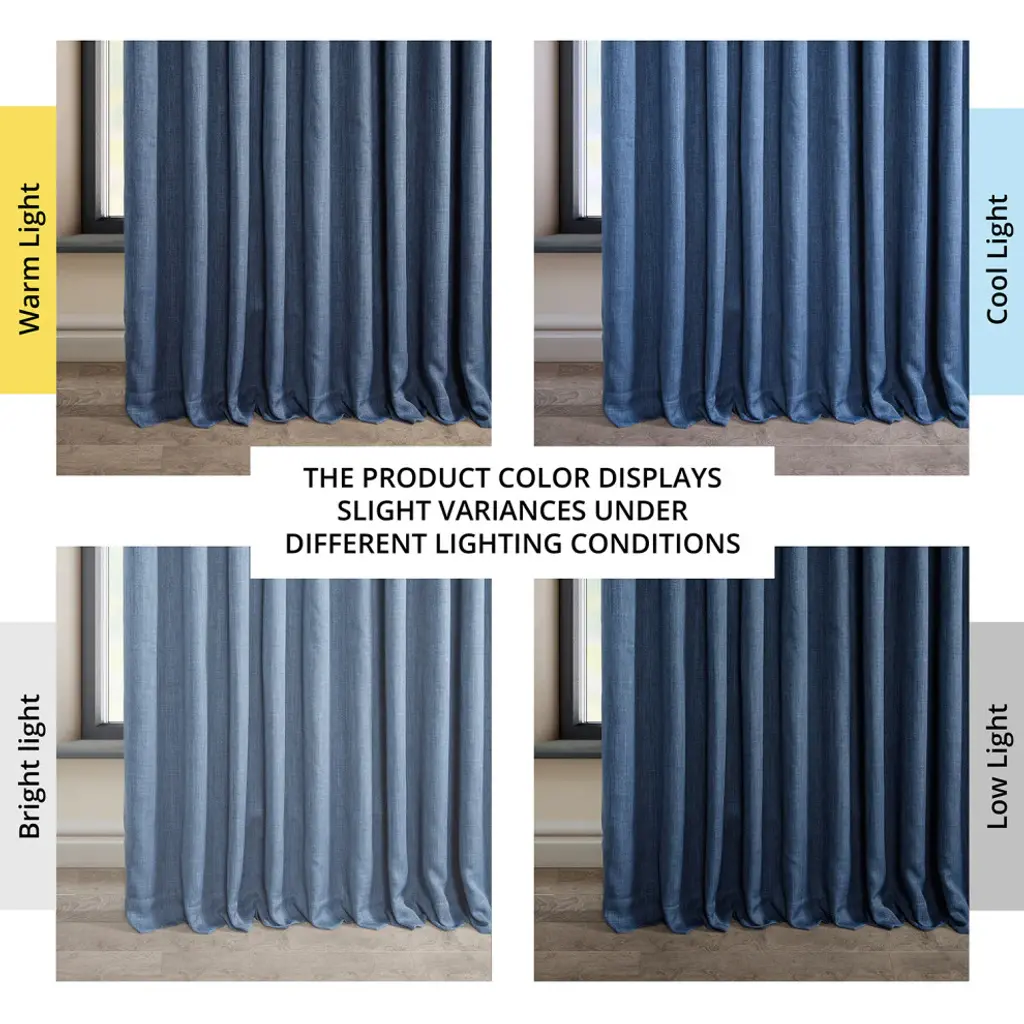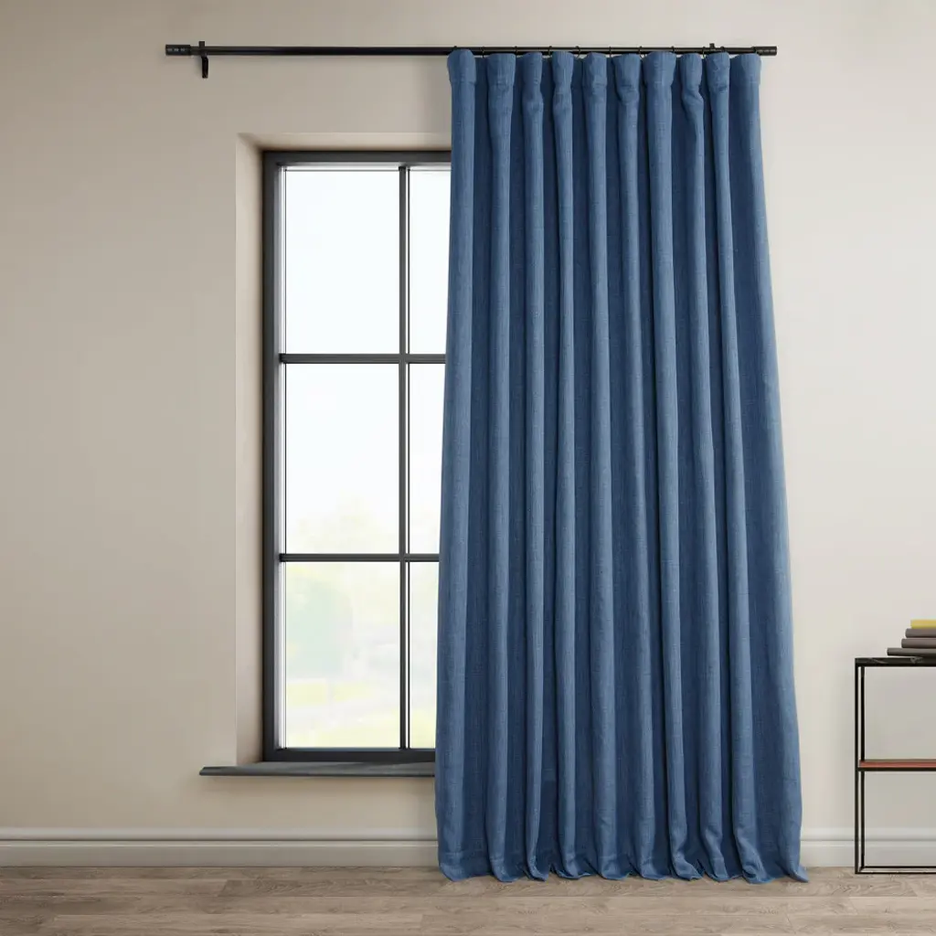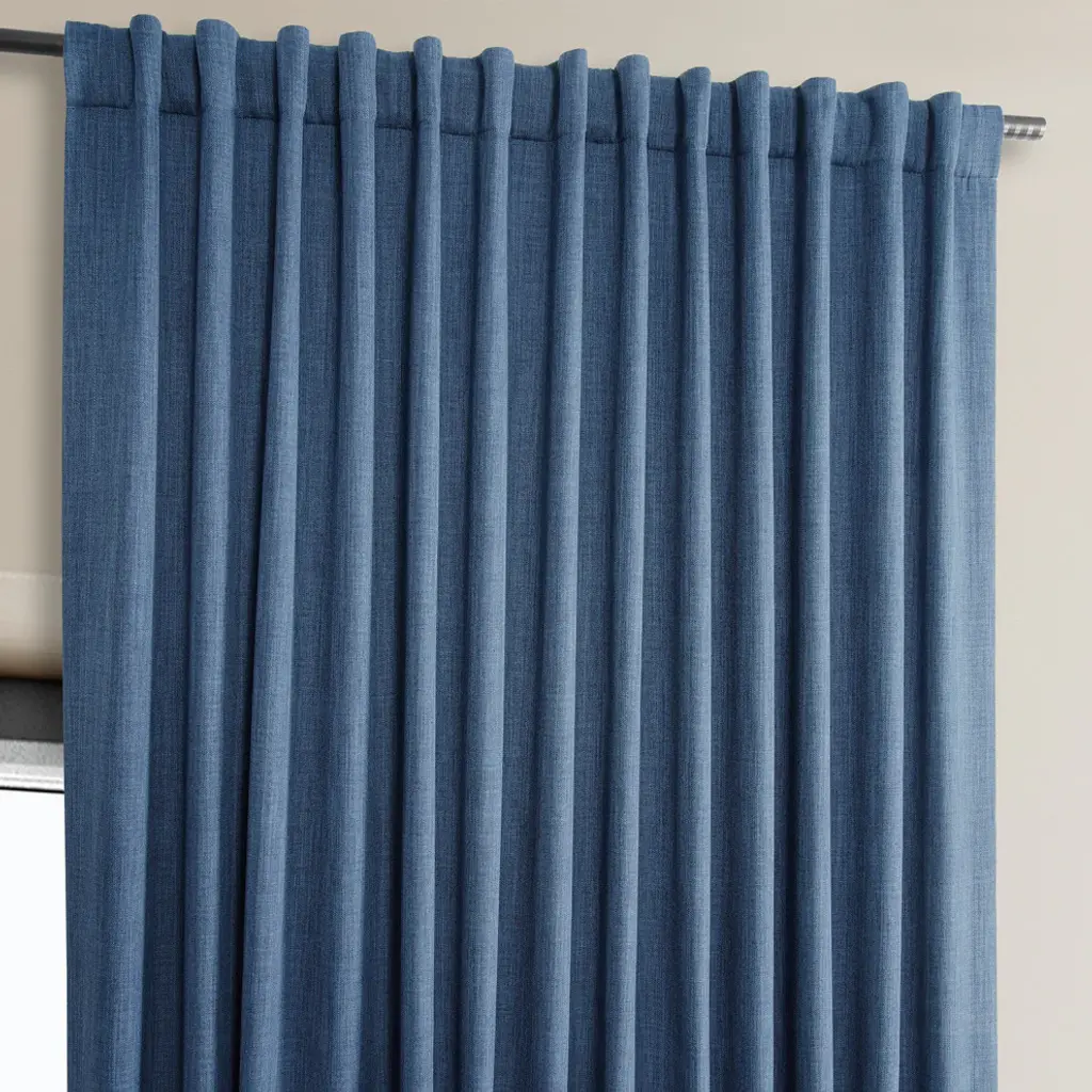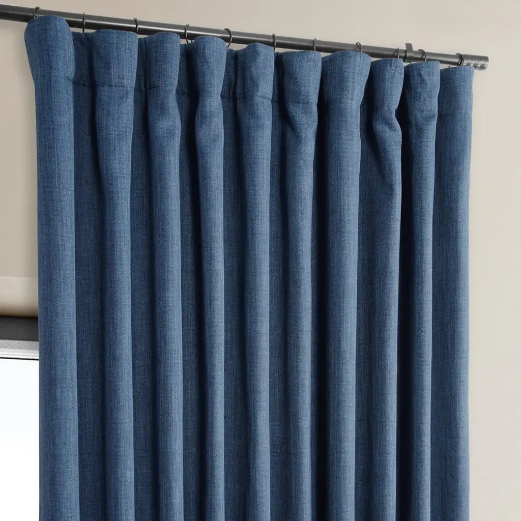 Faux Linen Extra Wide Room Darkening Curtain Single Panel, Denim, 100"x108"