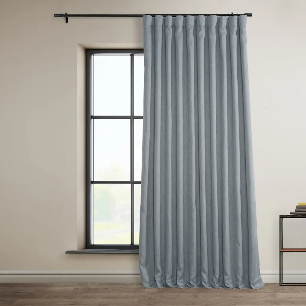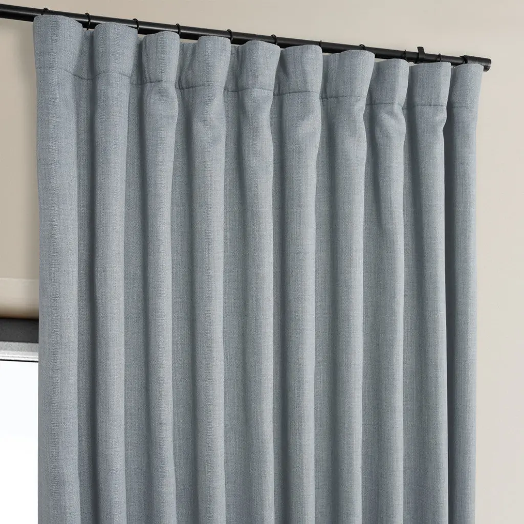 Faux Linen Extra Wide Room Darkening Curtain Single Panel, Heather Grey, 100x84
