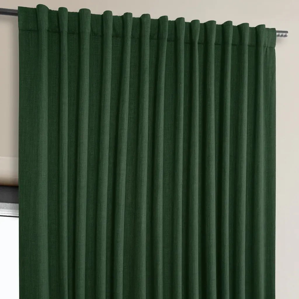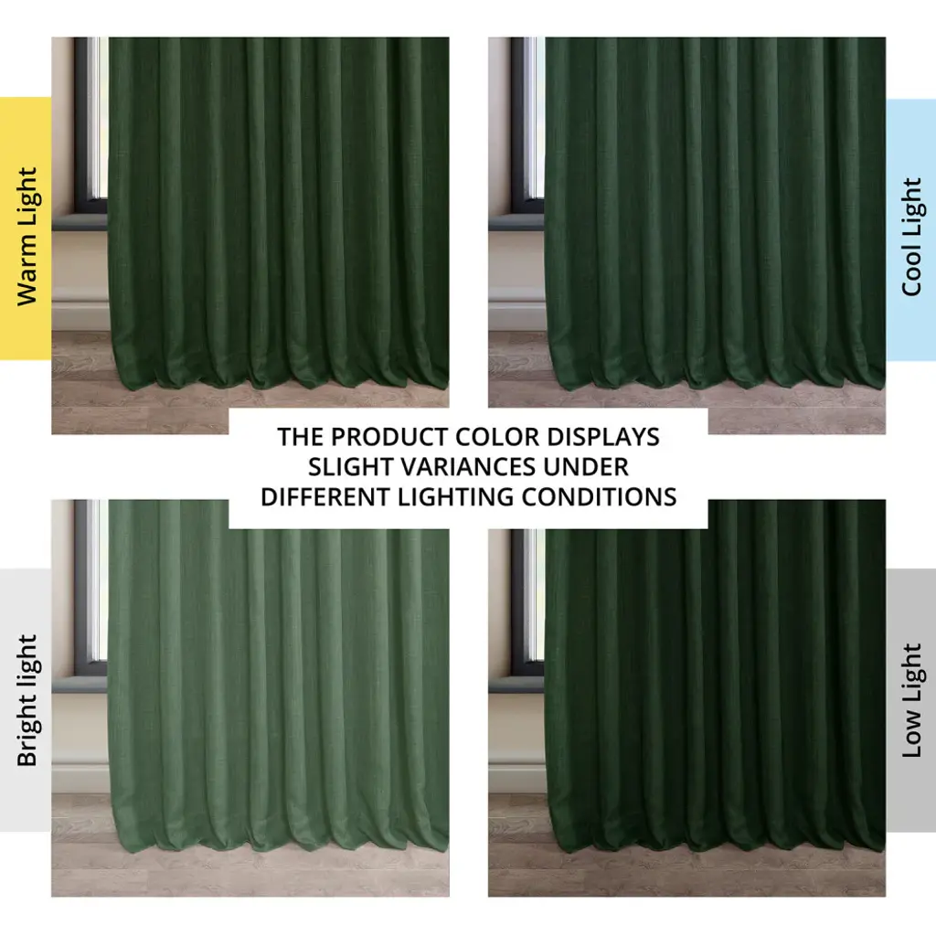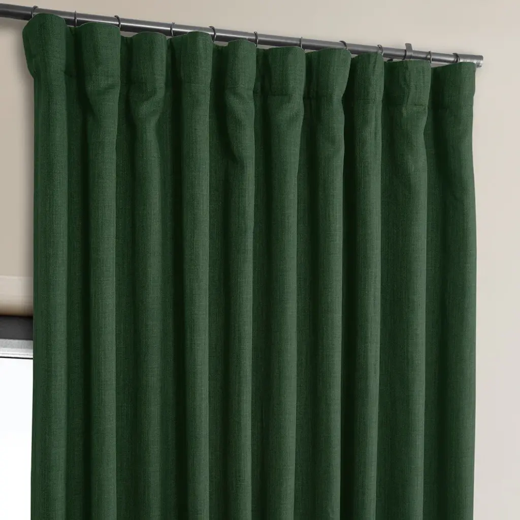 Faux Linen Extra Wide Room Darkening Curtain Single Panel, Key Green, 100wx96l