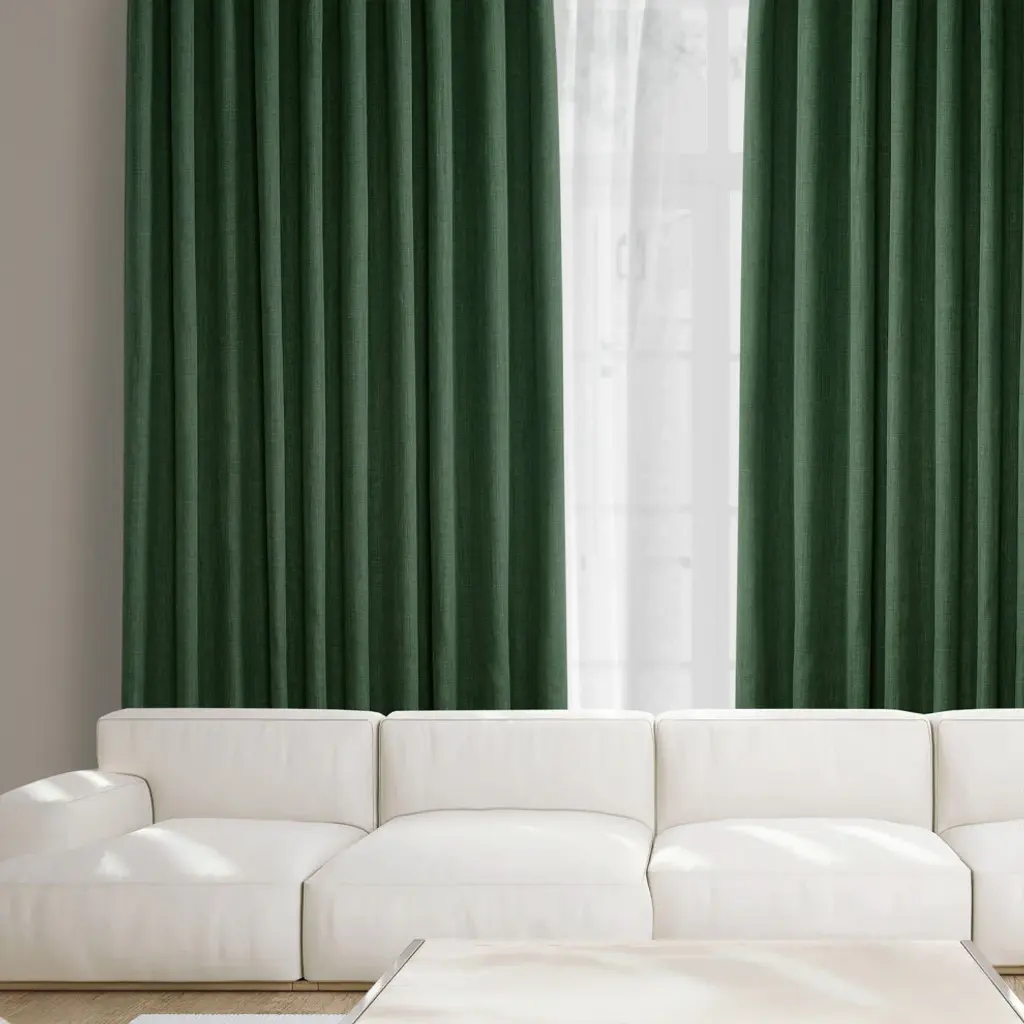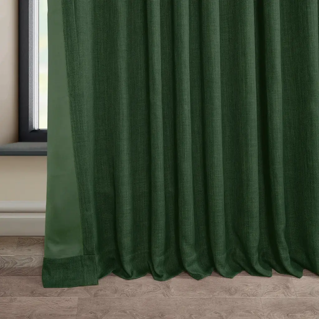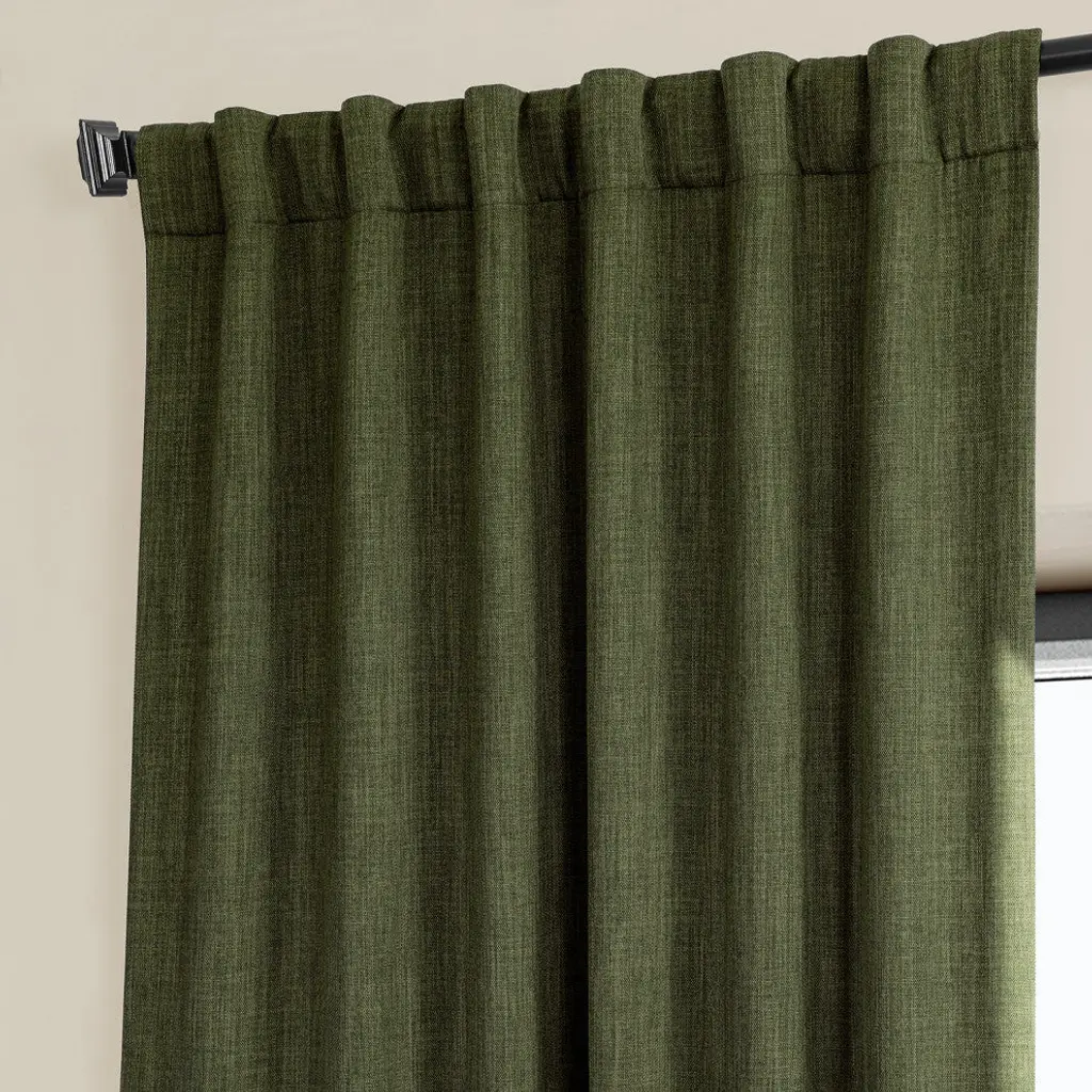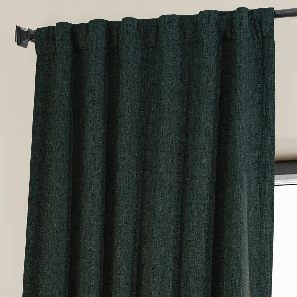 Faux Linen Extra Wide Room Darkening Curtain Single Panel, Key Green, 100wx96l