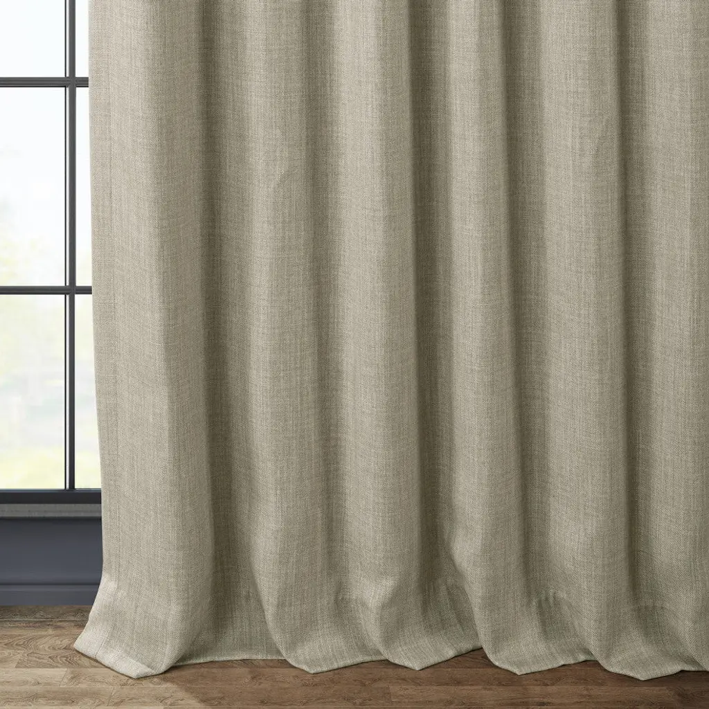 Faux Linen Grommet Room Darkening Curtain Single Panel, Thatched Tan, 50w X 120l