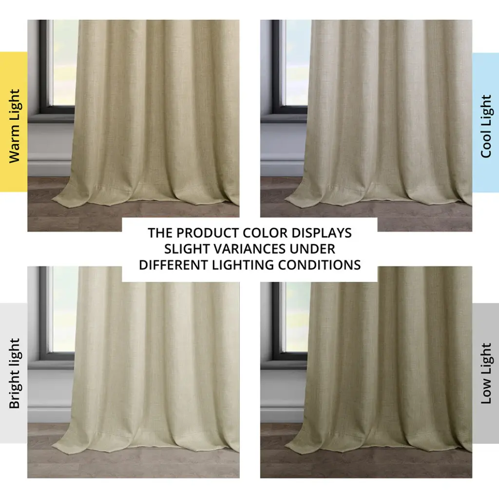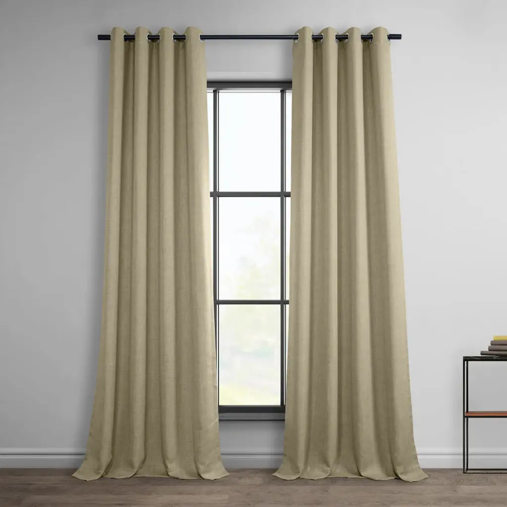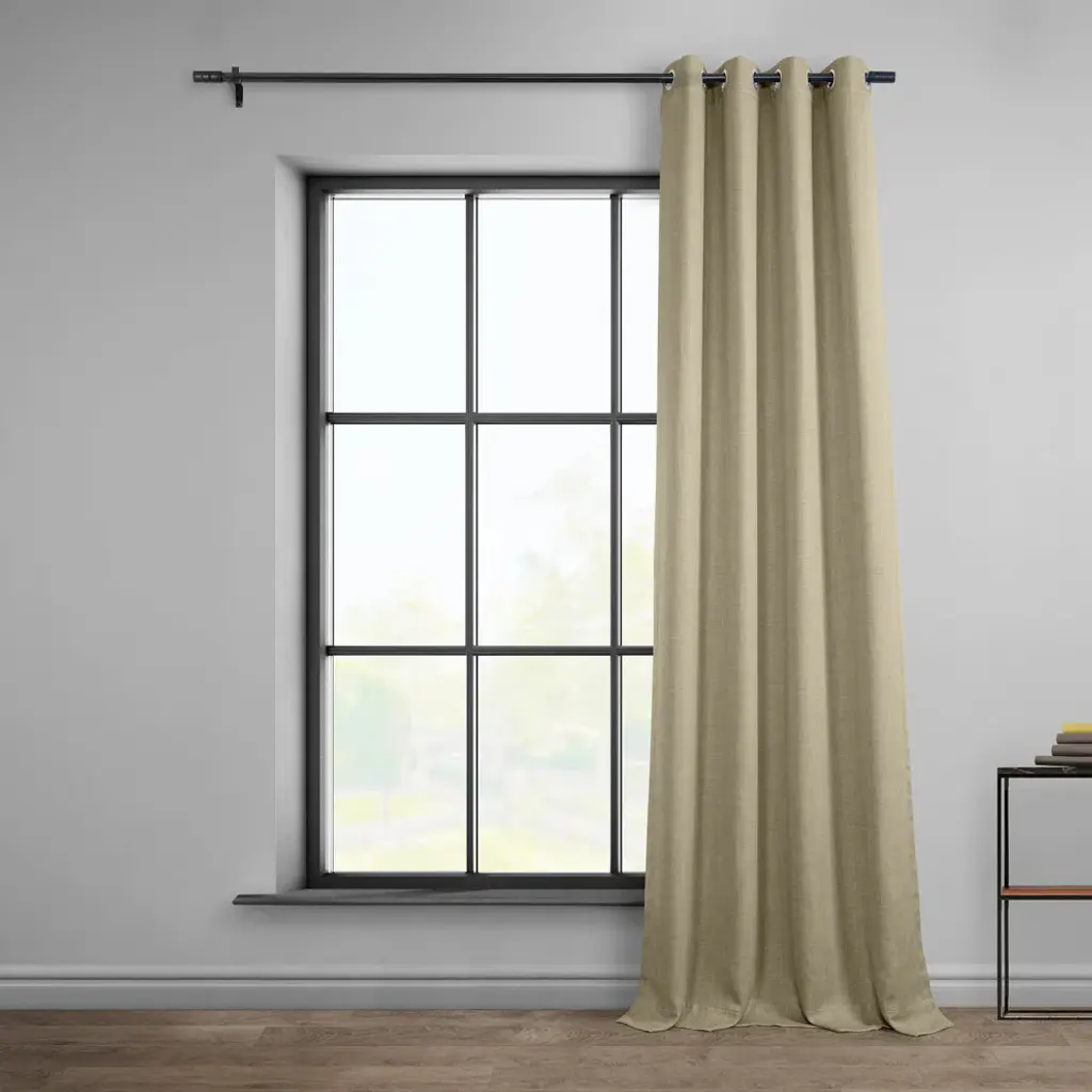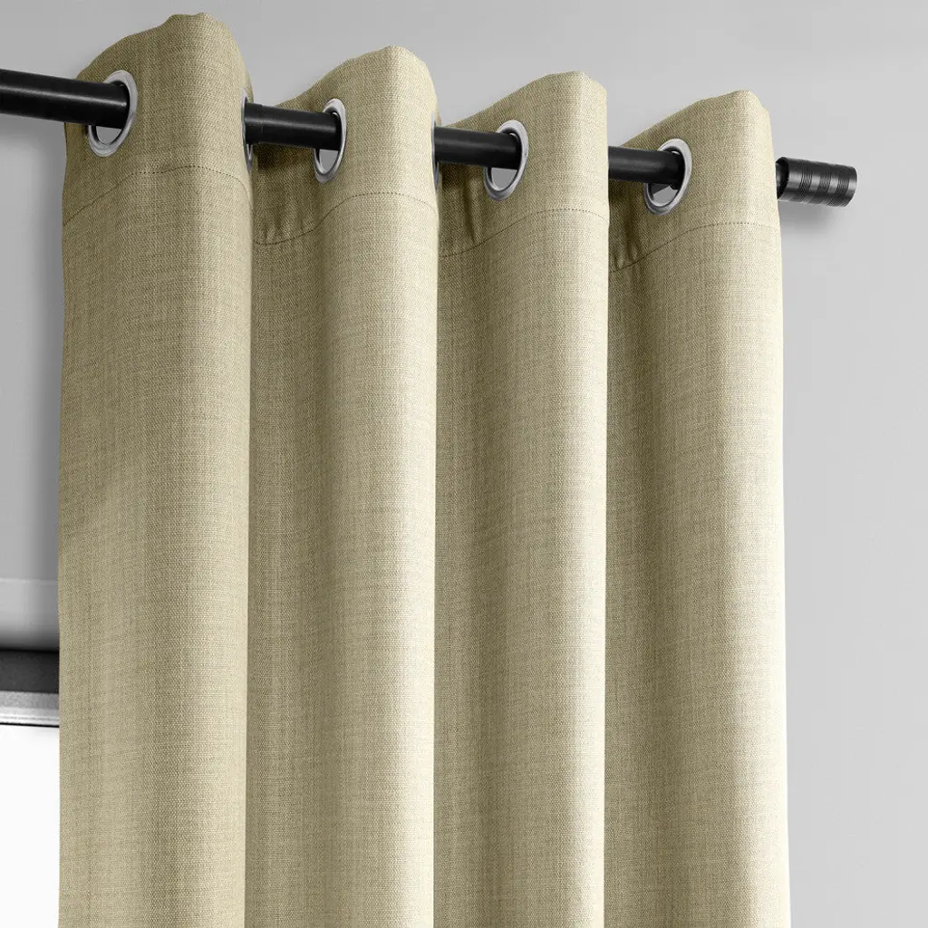 Faux Linen Grommet Room Darkening Curtain Single Panel, Thatched Tan, 50w X 120l