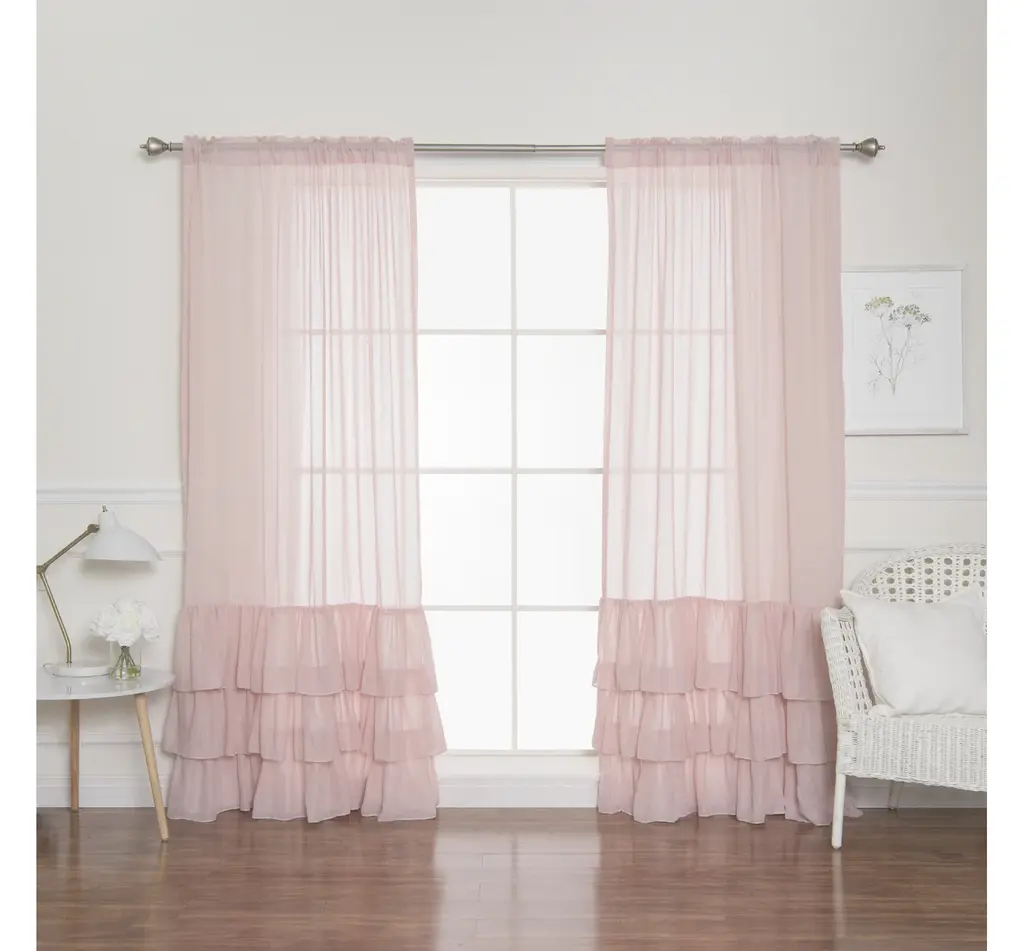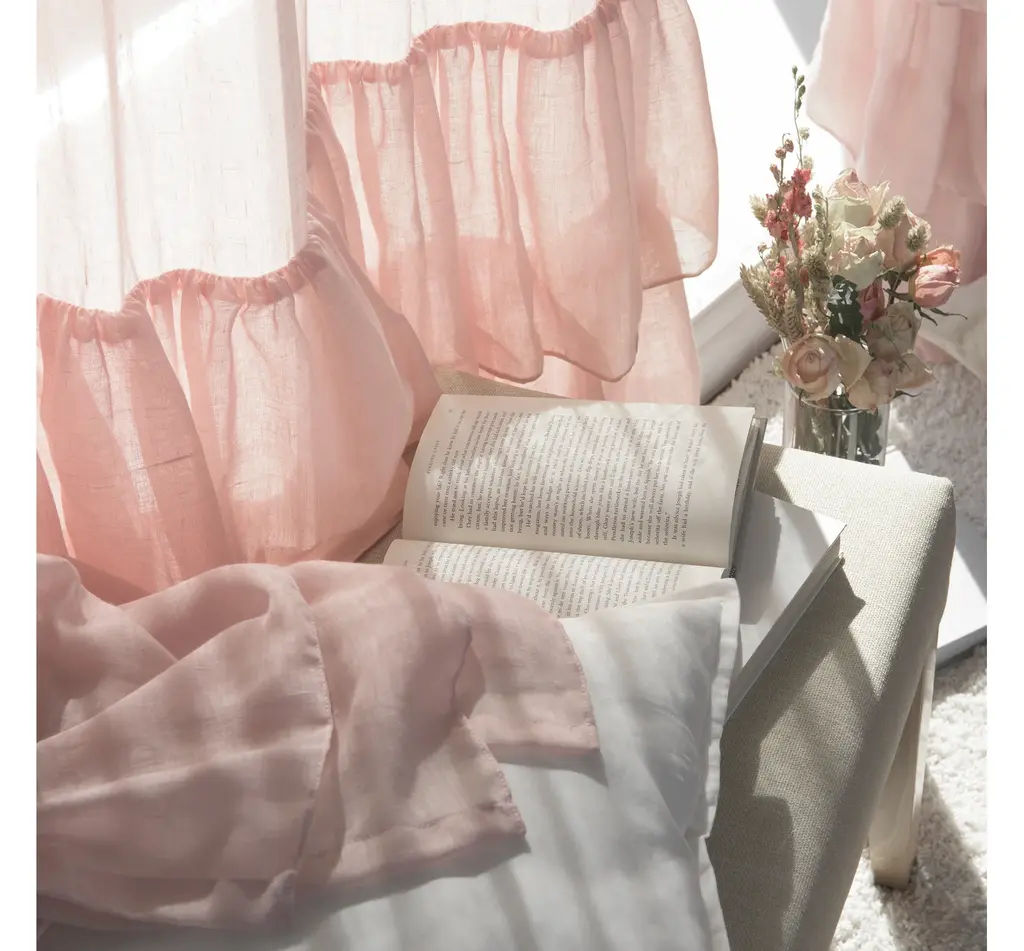 Accentuate your windows with our simple and classy Faux Linen Ruffle Curtains. Elegant and feminine, these ruffle bottom panels will instantly add character and style to your existing decor. Simply drape them over your windows to create a cozy and romantic ambiance.Features:Opaque/unlinedFeatures rod pocket hanging styleMade of 100% polyesterSold as sets of 2Machine washableTumble dry low
