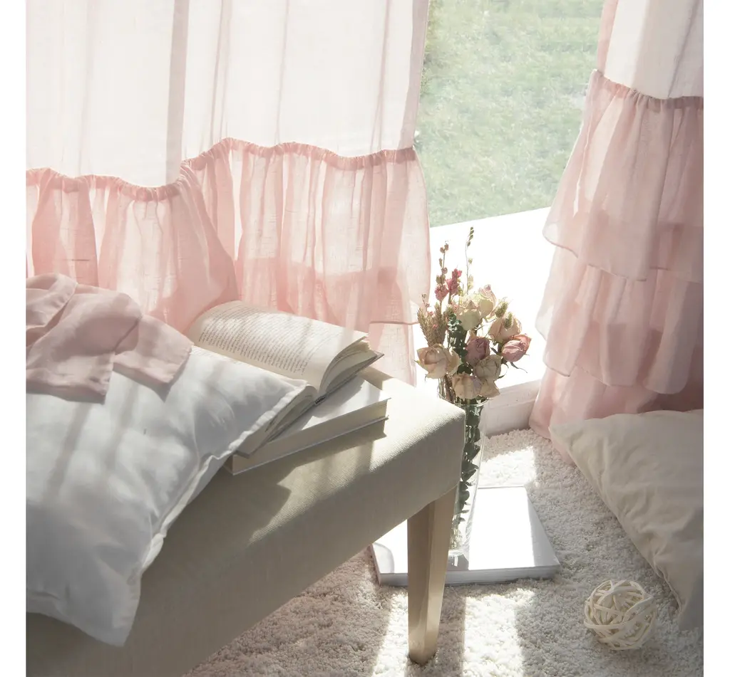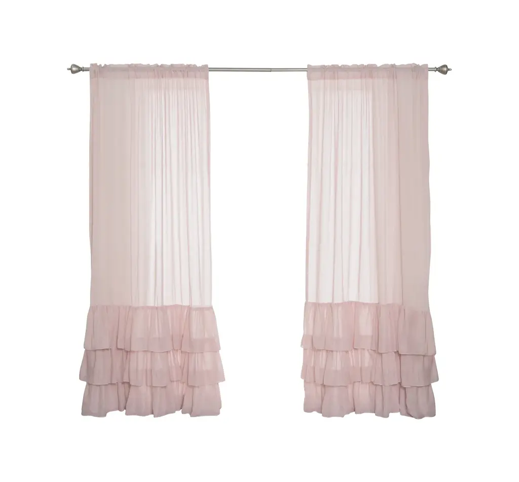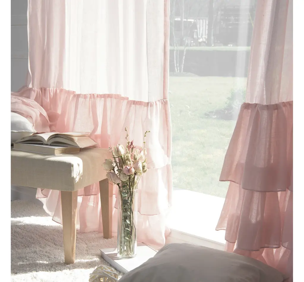 Faux Linen Ruffle Curtains, Pink, 52"x84", Set Of 2