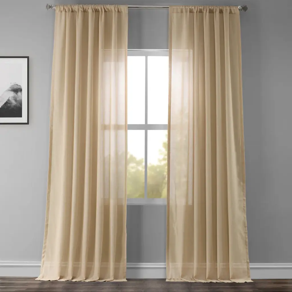 Faux Linen Sheer Curtain Single Panel, Raffia Tan, 50"x108"