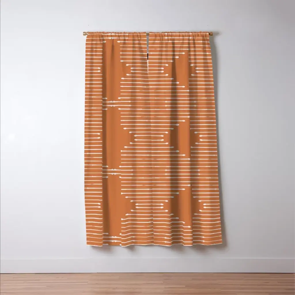 Blackout curtains are crafted with 100% woven polyester with a linen-like texture.Light-Filtering curtains are crafted with 100% mid-weight polyester.Sheer curtains are crafted with 100% lightweight polyester.Single sided print with white on reverse.Available in single or double panel options (double panels feature the same design on both).4" bottom pocket for easy hanging on any curtain rod (please note: artwork will appear upside down on non-patterned designs).Machine washable for easy care.Please note: Color variations may occur between on-site previews, your screen, and the printed fabric.Blackout, Light-Filtering, and Sheer Curtains are easy to care for:Machine wash cold.Use gentle cycle.Tumble dry low.SHIPPING: Items are made to order and typically ship within 3-4 business days. Click here for more information about delivery options.RETURNS: Return requests can be made within 30 days of your item(s) delivery. Click here for more information on returns.