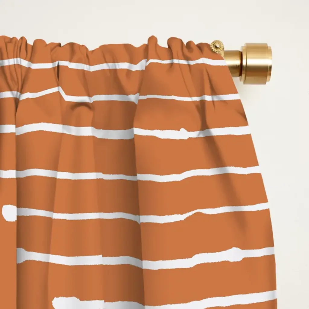 Blackout curtains are crafted with 100% woven polyester with a linen-like texture.Light-Filtering curtains are crafted with 100% mid-weight polyester.Sheer curtains are crafted with 100% lightweight polyester.Single sided print with white on reverse.Available in single or double panel options (double panels feature the same design on both).4" bottom pocket for easy hanging on any curtain rod (please note: artwork will appear upside down on non-patterned designs).Machine washable for easy care.Please note: Color variations may occur between on-site previews, your screen, and the printed fabric.Blackout, Light-Filtering, and Sheer Curtains are easy to care for:Machine wash cold.Use gentle cycle.Tumble dry low.SHIPPING: Items are made to order and typically ship within 3-4 business days. Click here for more information about delivery options.RETURNS: Return requests can be made within 30 days of your item(s) delivery. Click here for more information on returns.