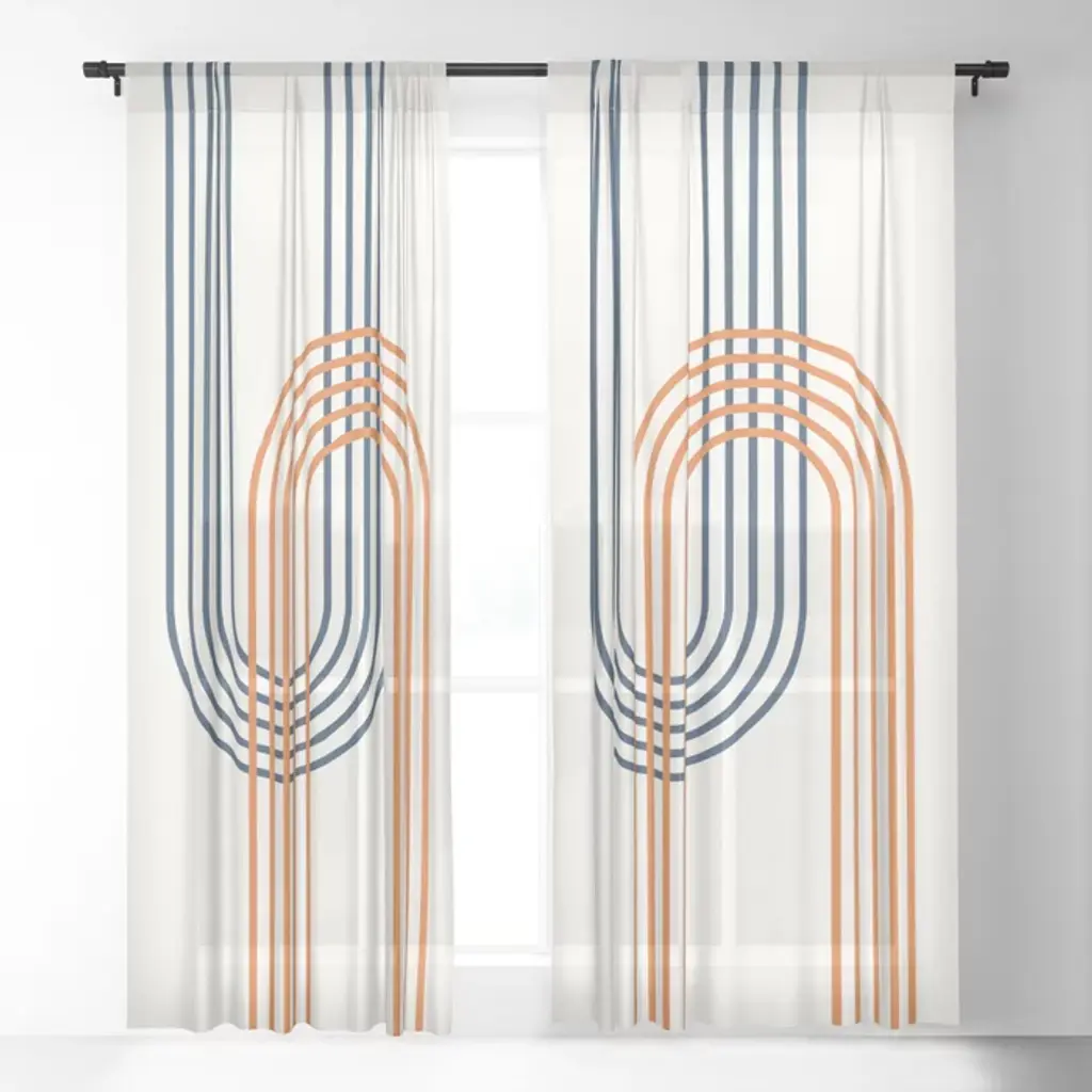Geometric Lines Rainbow Abstract 5.1 In Navy Blue And Orange Curtain