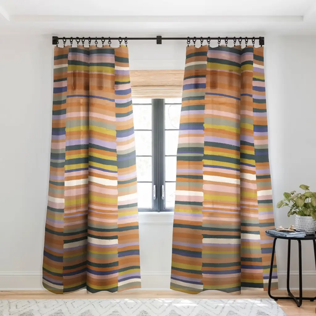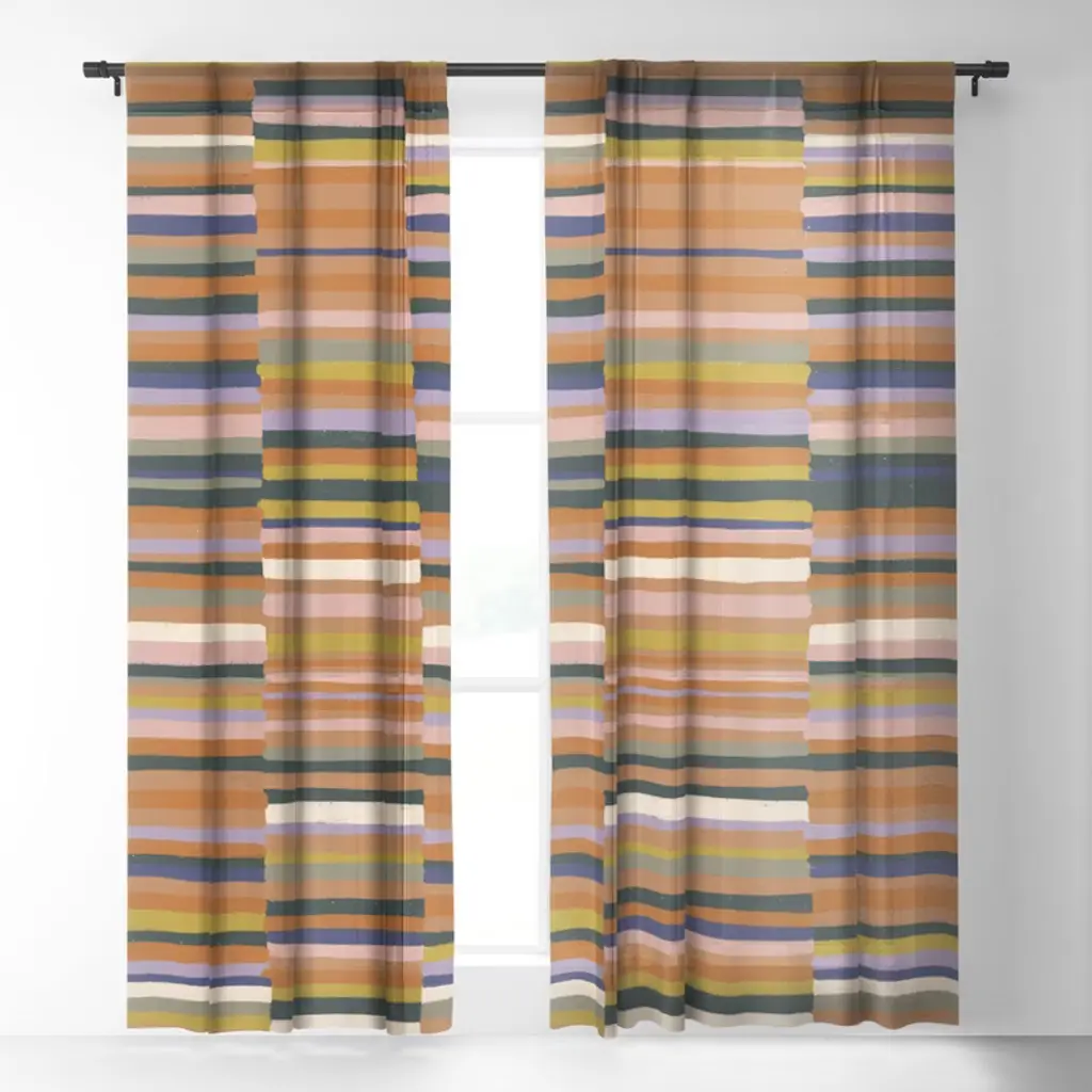 Gigi Rosado Brown Striped Pattern 50" X 108" Set Of 2 Panel Sheer Window Curtain - Deny Designs