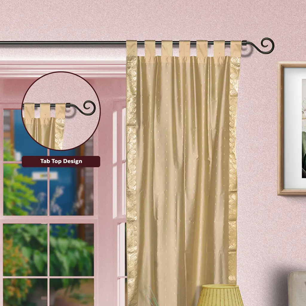 Golden Tab Top Sheer Sari Curtain / Drape / Panel - Pair