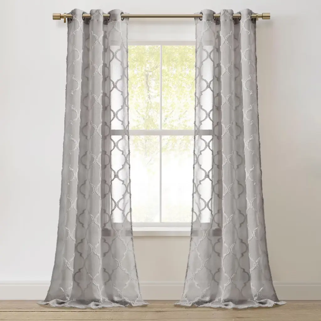 Goodgram 2 Pack: Trellis Embroidered Sheer Voile Grommet Curtain Panels - 38 In. W X 84 In. L, Gray