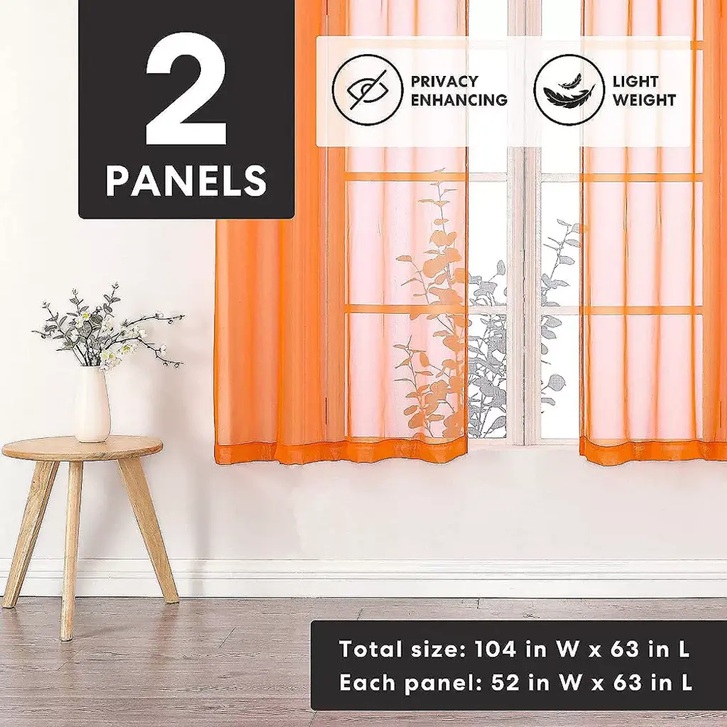 Goodgram® Basics Bright Orange 2 Piece Grommet Top Translucent Sheer Voile Window Curtain Panels - 63 In. Long