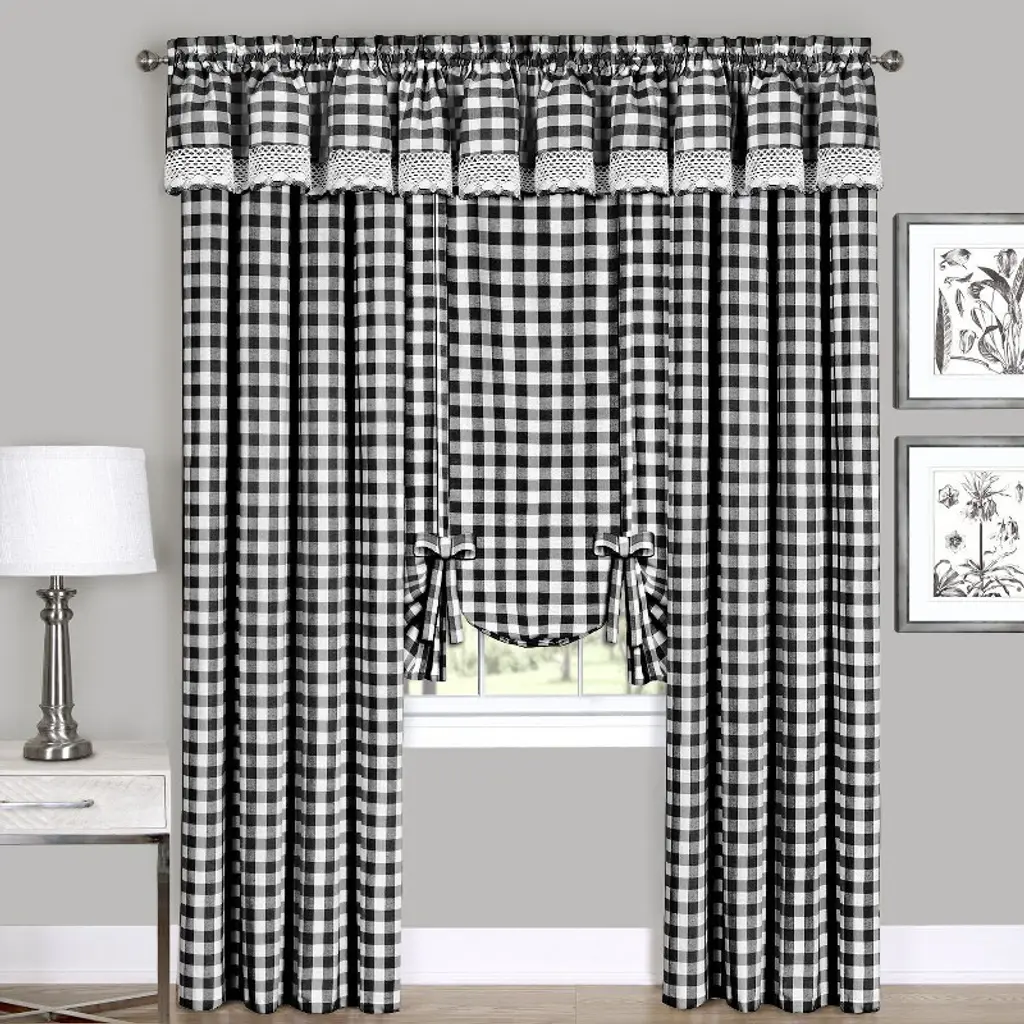 A Country Famrhouse Chic Inspired Complete Window Curtain & Topper Window Set Will Dress Up Any Window in a Country Themed Plaid Checkered Design. Comes with a rod pocket header for easy installation, this set comes ready to hang within minutes. Comes as a complete set for a stunning custom made look at fraction of the cost.