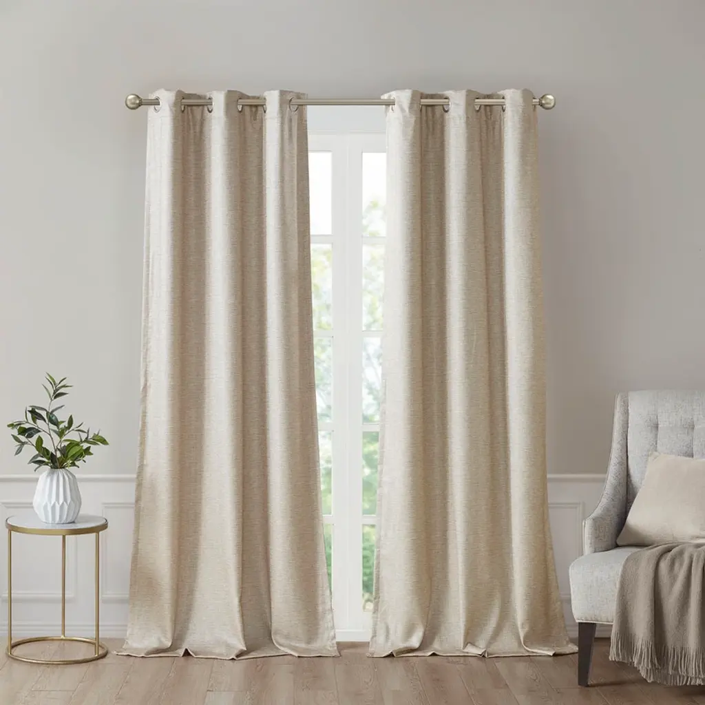 Gracie Mills Brianna Rustic Plaid Faux Leather Tab Top Curtain Panel - One Size - Natural