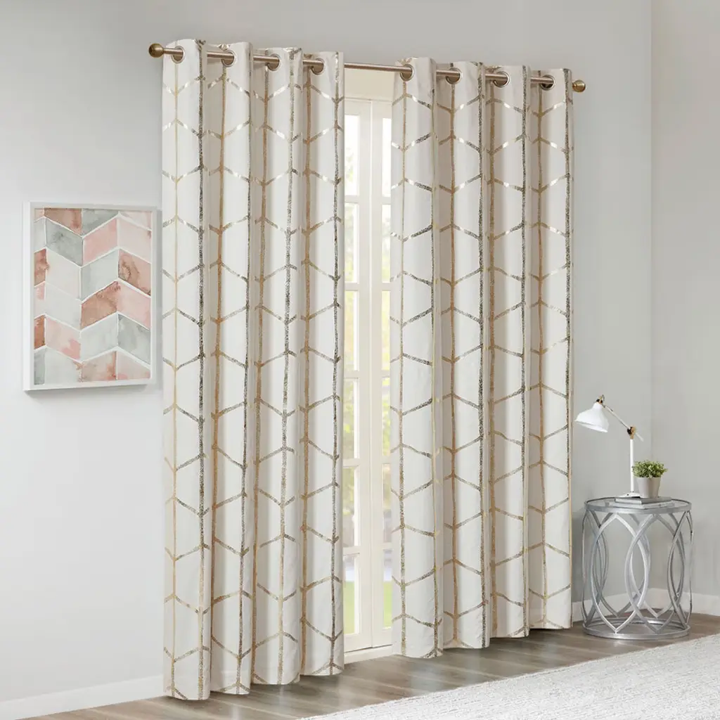 Gracie Mills Isabelle Metallic Geometric Total Blackout Grommet Top Curtain Panel - One Size - Ivory/gold