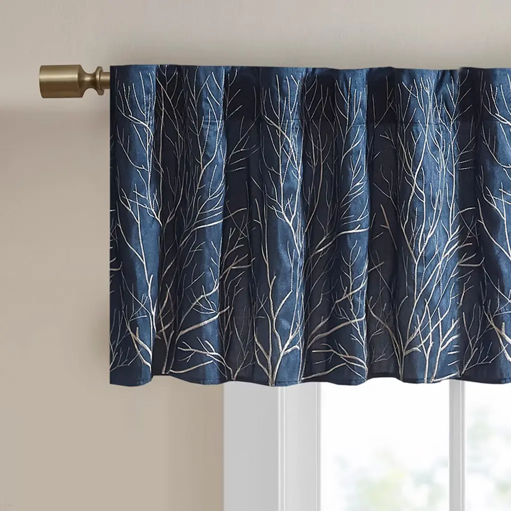 Gracie Mills Saffron Botanical Embroidered Faux Silk Window Valance - One Size - Navy
