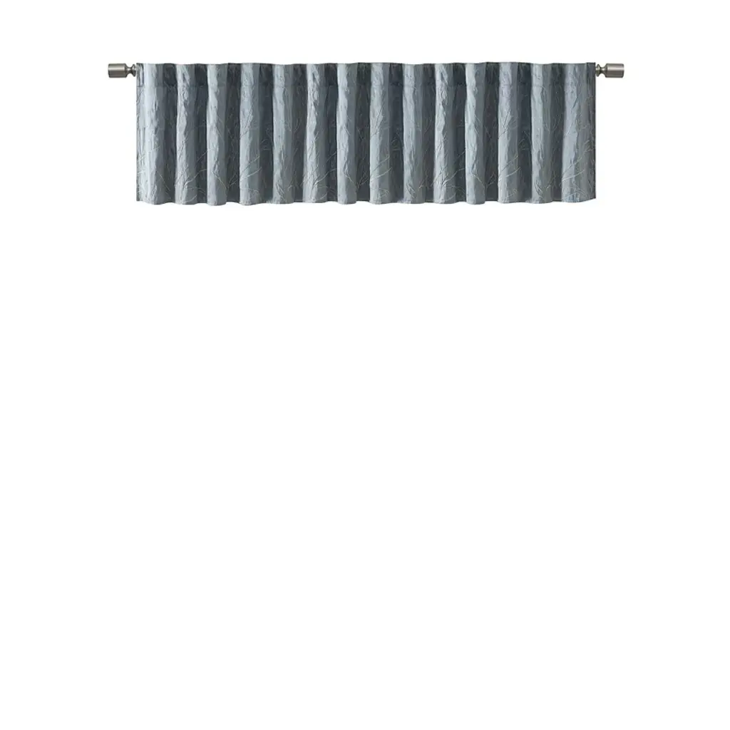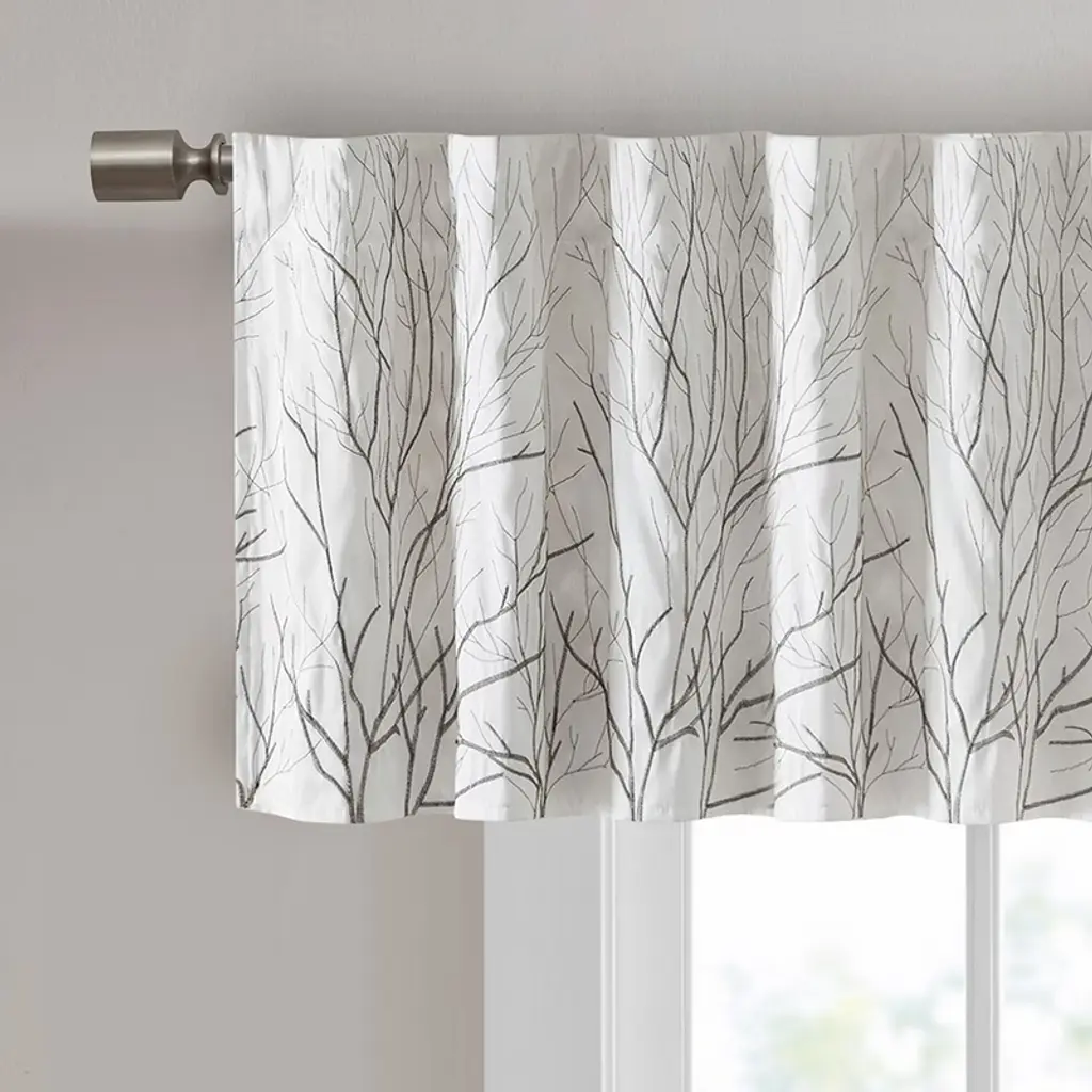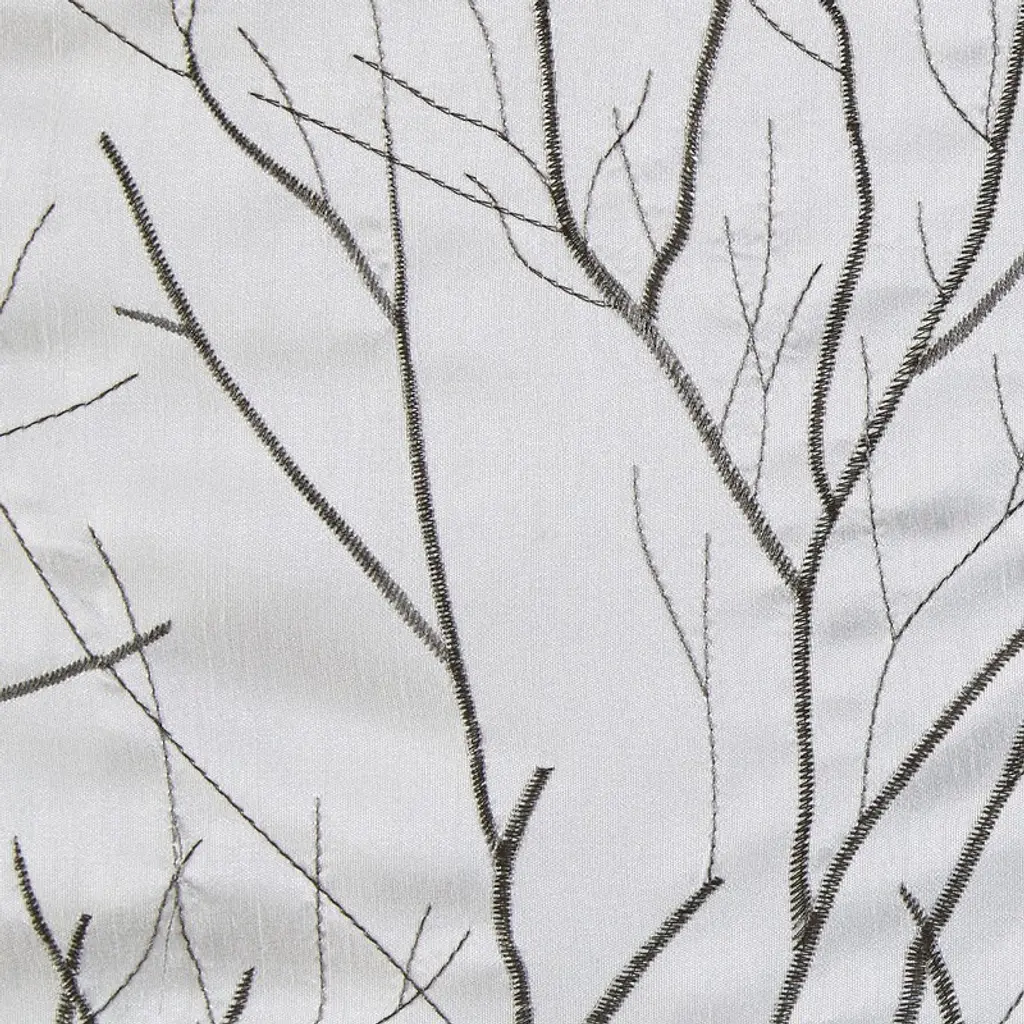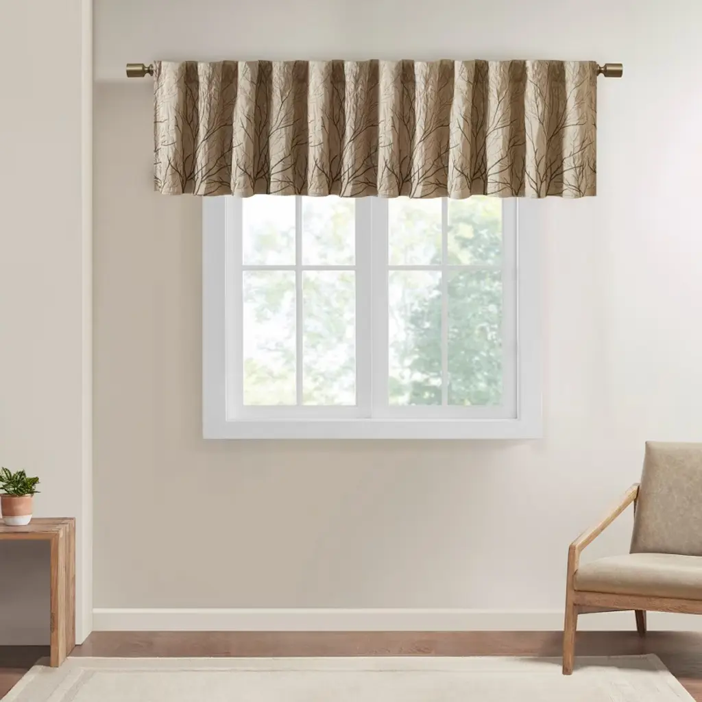Our Botanical Embroidered Faux Silk Valance features a striking tree branch design on faux silk, adding dimension and contrast. Finished with a rod pocket top. Can be used alone or layered with coordinating panels.