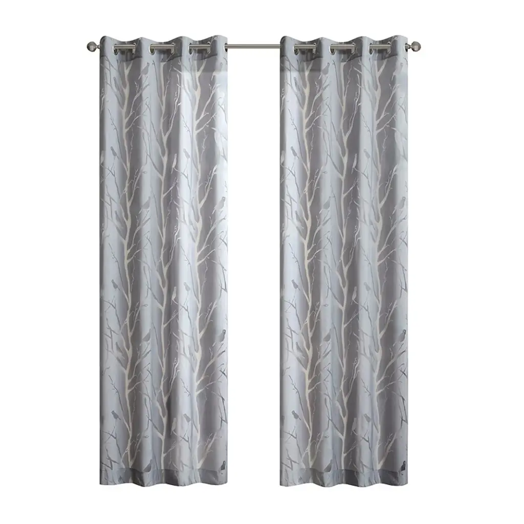 Grommet Top Sheer Bird On Branches Burnout Window Curtain(only 1 Pc Panel)
