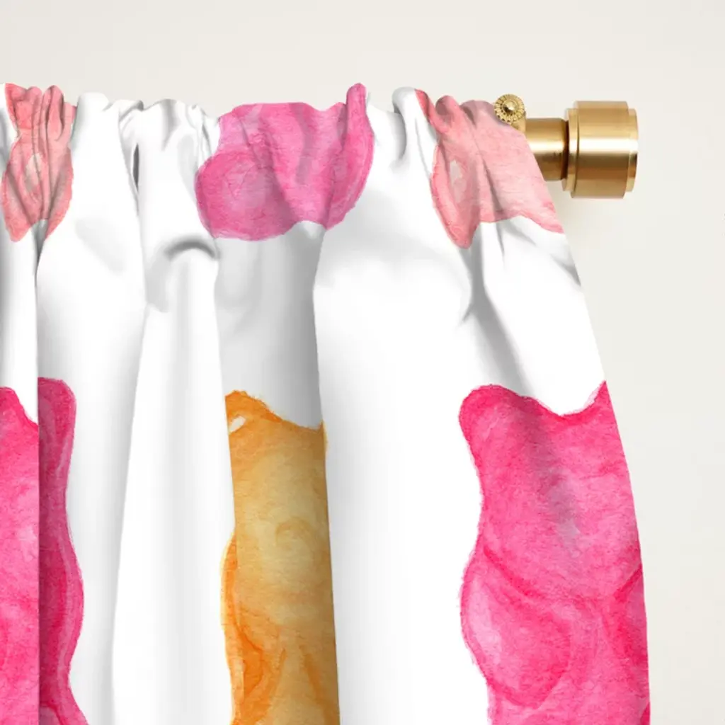 Blackout curtains are crafted with 100% woven polyester with a linen-like texture.Light-Filtering curtains are crafted with 100% mid-weight polyester.Sheer curtains are crafted with 100% lightweight polyester.Single sided print with white on reverse.Available in single or double panel options (double panels feature the same design on both).4" bottom pocket for easy hanging on any curtain rod (please note: artwork will appear upside down on non-patterned designs).Machine washable for easy care.Please note: Color variations may occur between on-site previews, your screen, and the printed fabric.Blackout, Light-Filtering, and Sheer Curtains are easy to care for:Machine wash cold.Use gentle cycle.Tumble dry low.SHIPPING: Items are made to order and typically ship within 3-4 business days. Click here for more information about delivery options.RETURNS: Return requests can be made within 30 days of your item(s) delivery. Click here for more information on returns.