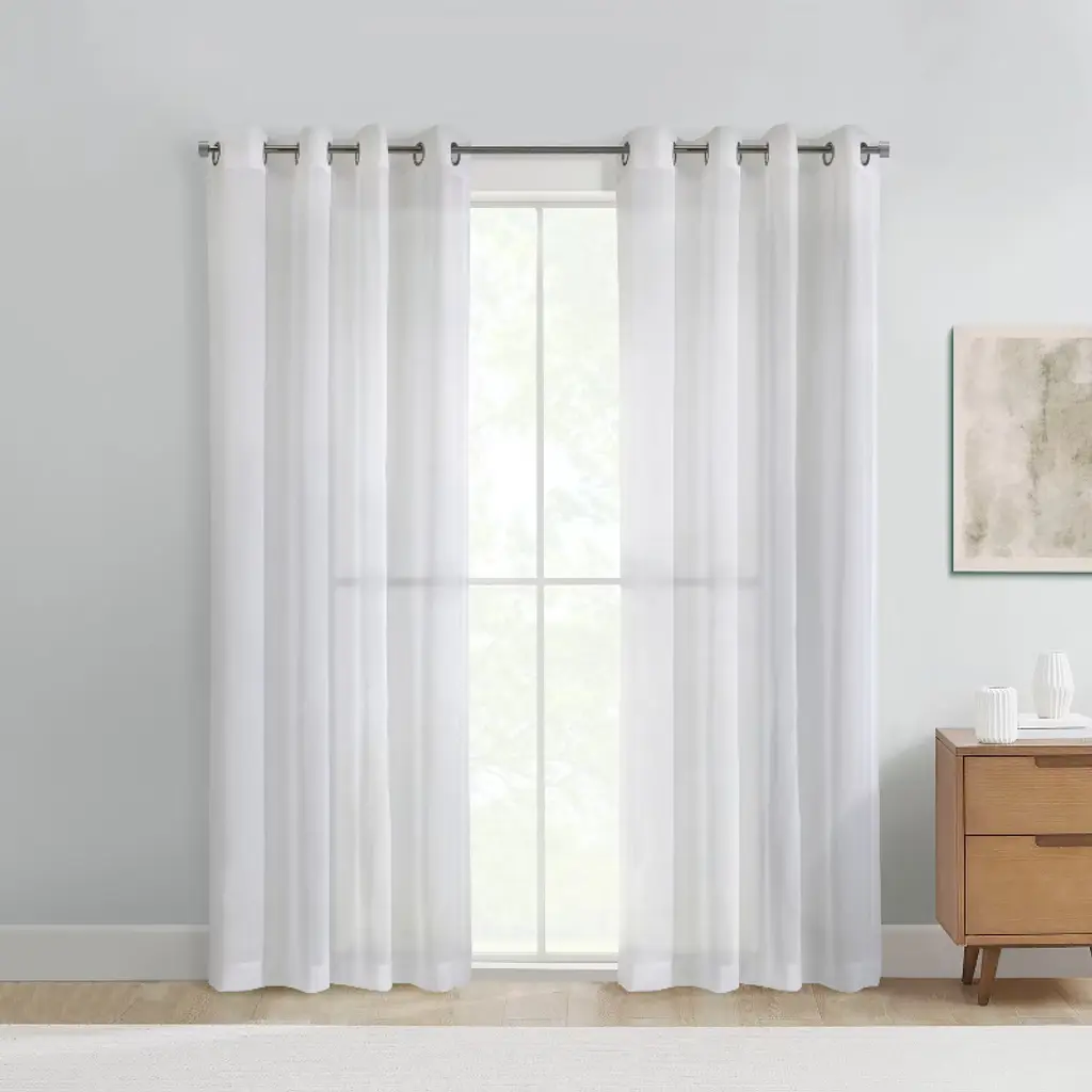 Habitat 100% Polyester Daphne Sheer Grommet Faux Linen Solid Curtain Panel 52" X 108" White