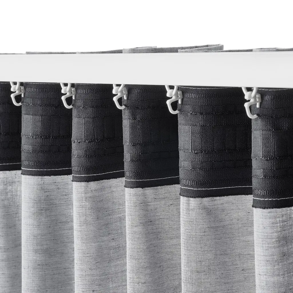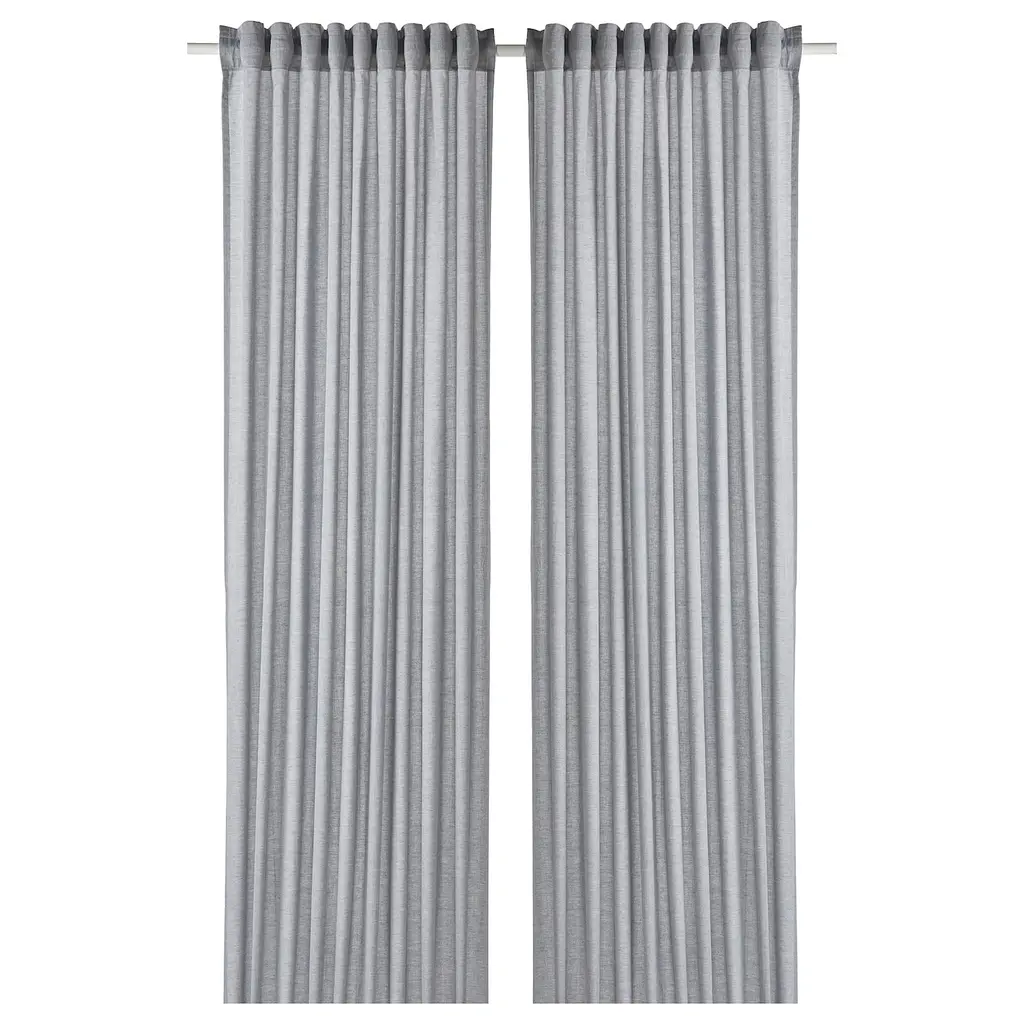HANNALILL Curtains, 1 pair - blue-gray 57x98 ". The curtains lower the general light level and provide privacy by preventing people outside from seeing directly into the room. The heading tape makes it easy for you to create pleats using RIKTIG curtain hooks. Contains 2 panels.