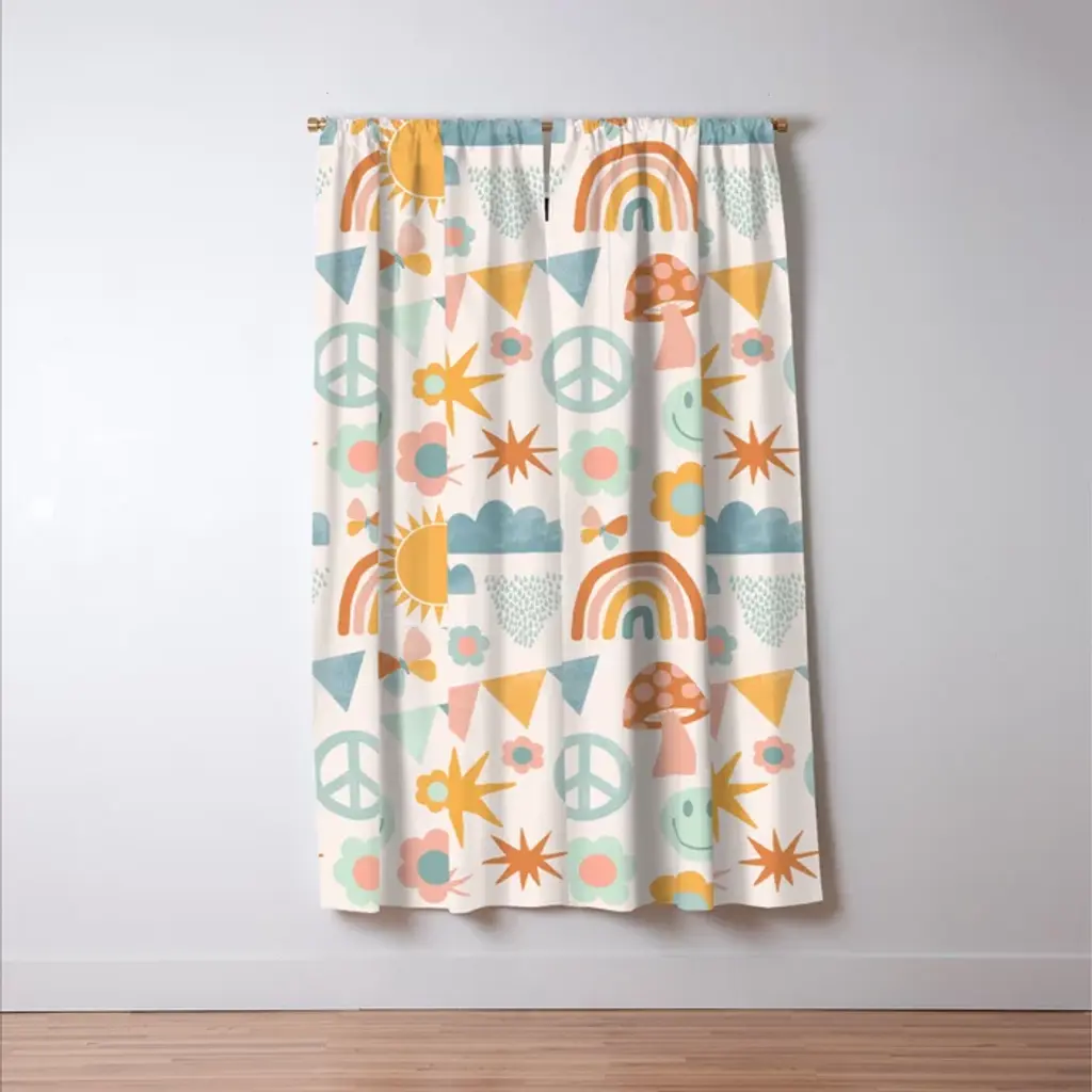 Blackout curtains are crafted with 100% woven polyester with a linen-like texture.Light-Filtering curtains are crafted with 100% mid-weight polyester.Sheer curtains are crafted with 100% lightweight polyester.Single sided print with white on reverse.Available in single or double panel options (double panels feature the same design on both).4" bottom pocket for easy hanging on any curtain rod (please note: artwork will appear upside down on non-patterned designs).Machine washable for easy care.Please note: Color variations may occur between on-site previews, your screen, and the printed fabric.Blackout, Light-Filtering, and Sheer Curtains are easy to care for:Machine wash cold.Use gentle cycle.Tumble dry low.SHIPPING: Items are made to order and typically ship within 3-4 business days. Click here for more information about delivery options.RETURNS: Return requests can be made within 30 days of your item(s) delivery. Click here for more information on returns.