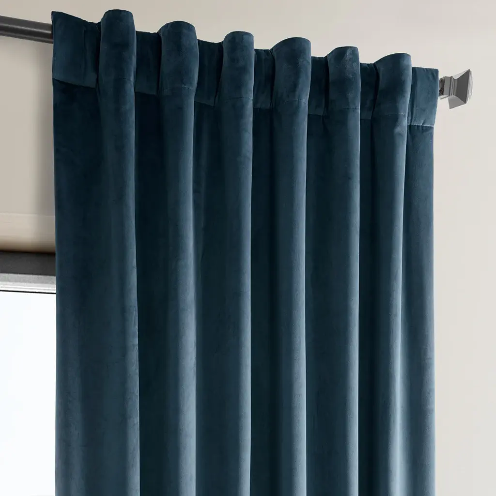 Heritage Plush Velvet Curtain Single Panel, Avalon Blue, 50"x120"