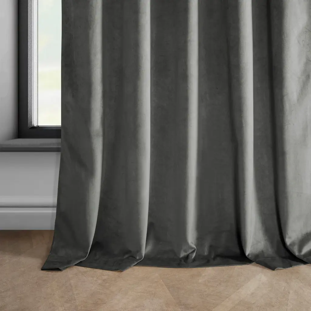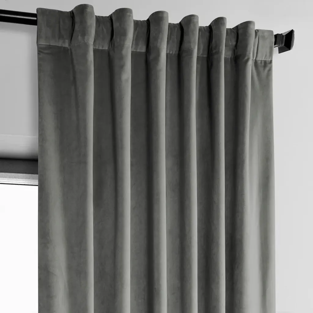 Heritage Plush Velvet Curtain Single Panel, Destiny Gray, 50"x96"