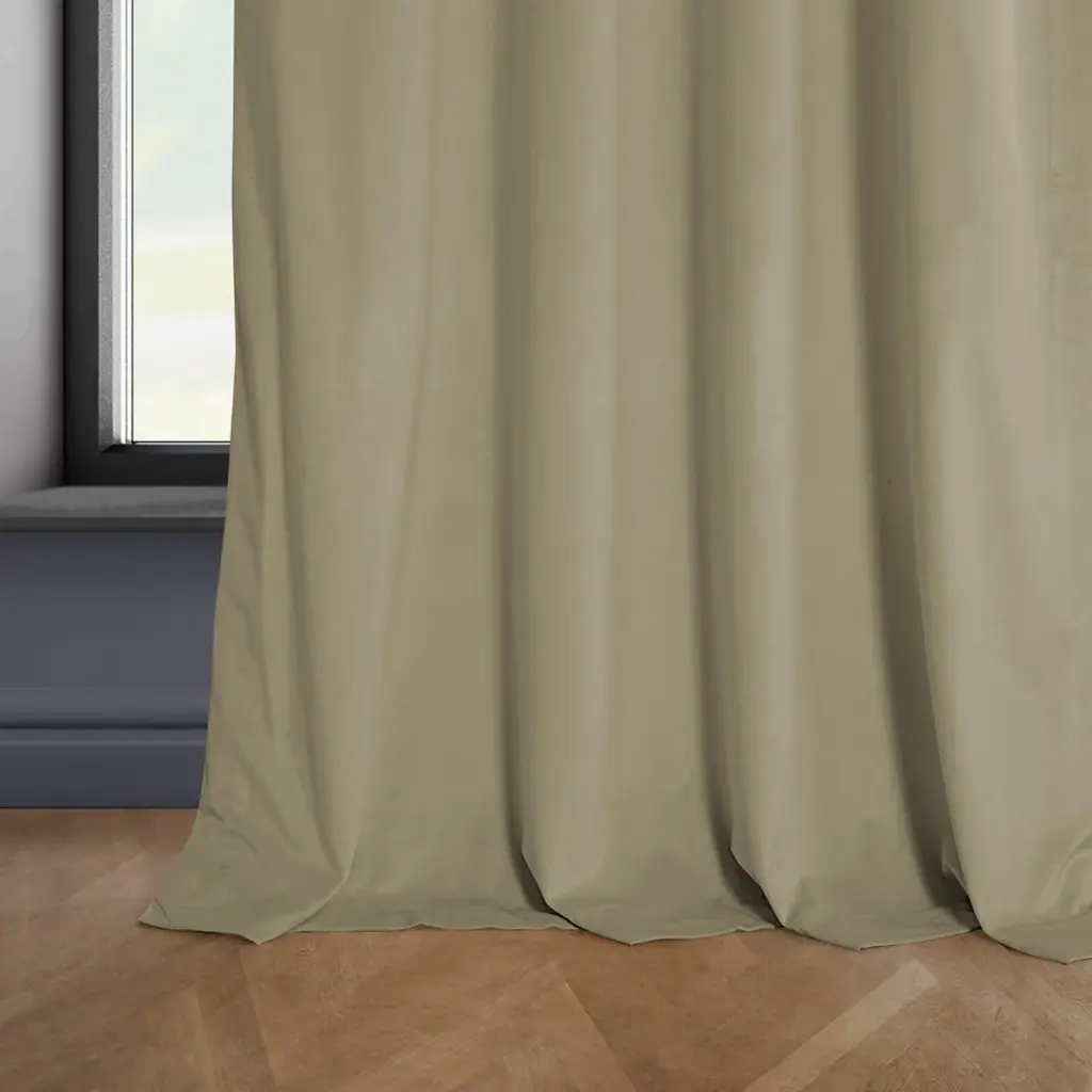 Heritage Plush Velvet Curtain Single Panel, Light Beige, 50"x108"