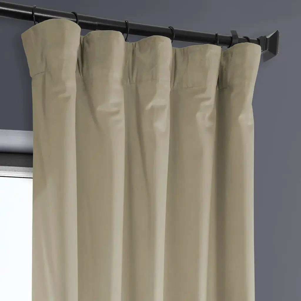 Heritage Plush Velvet Curtain Single Panel, Light Beige, 50"x120"