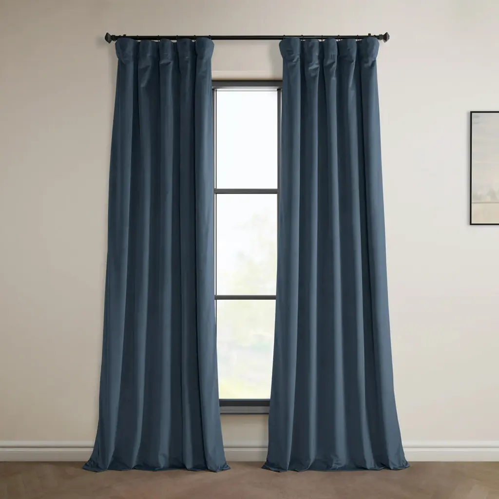 Heritage Plush Velvet Curtain Single Panel, London Blue, 50"x120"