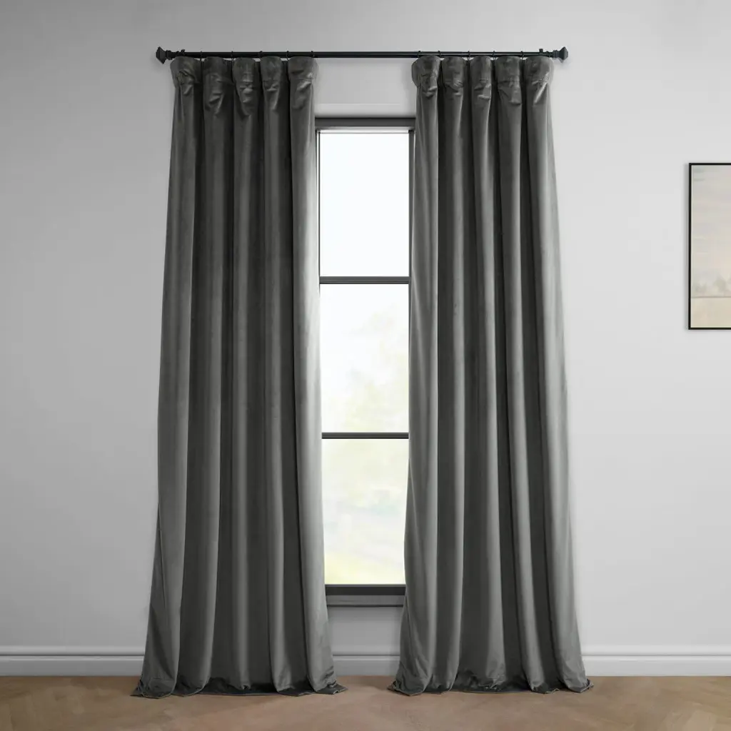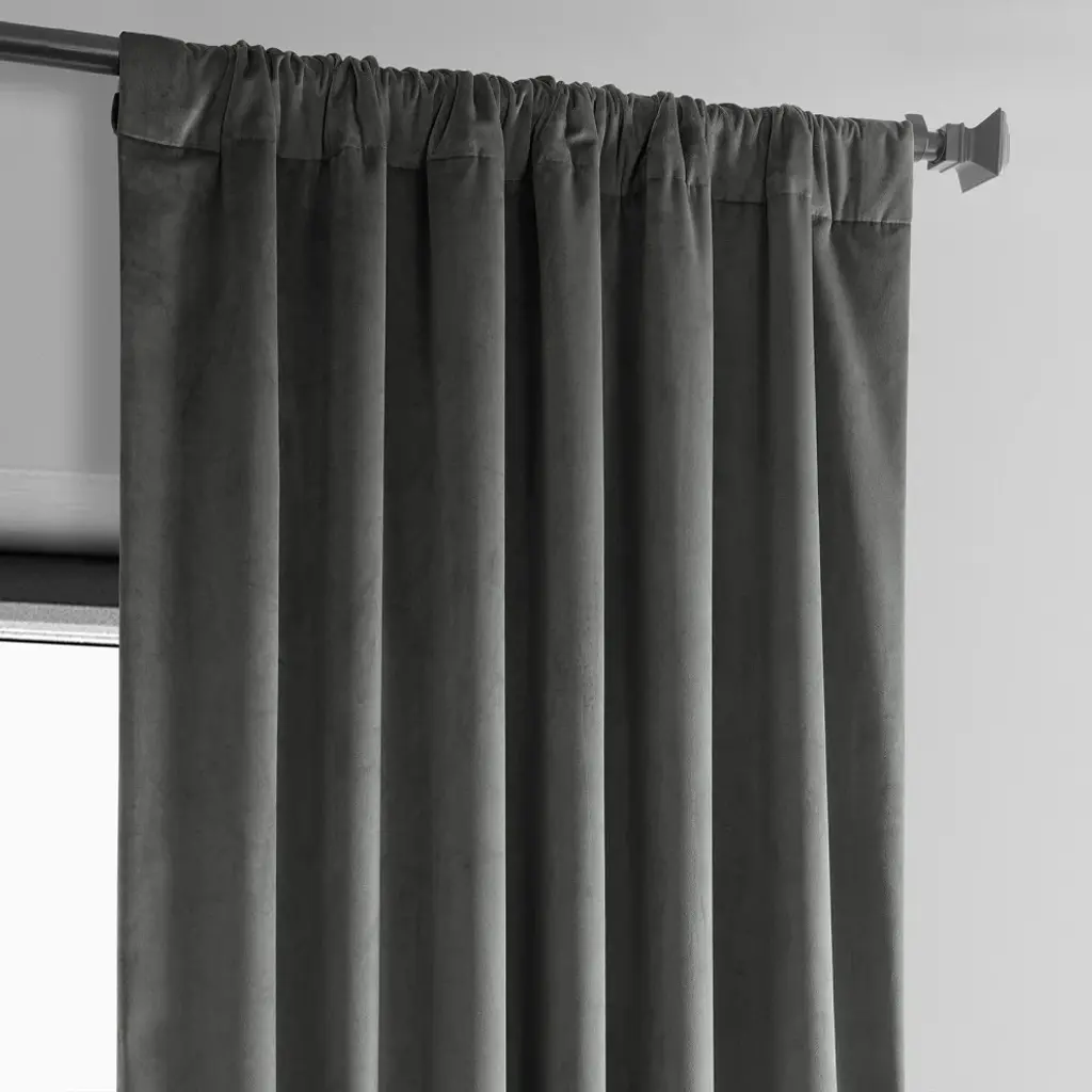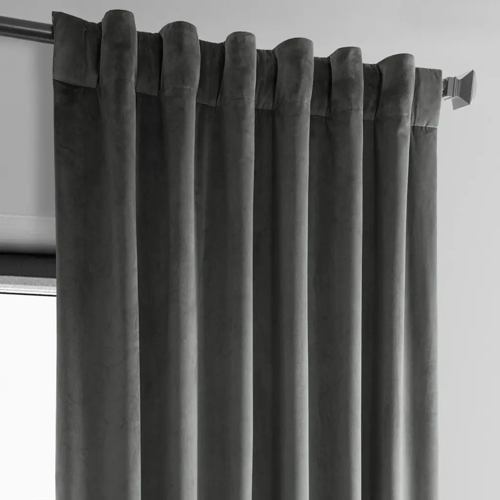 Heritage Plush Velvet Curtain Single Panel, Pepper Grey, 50"x108"