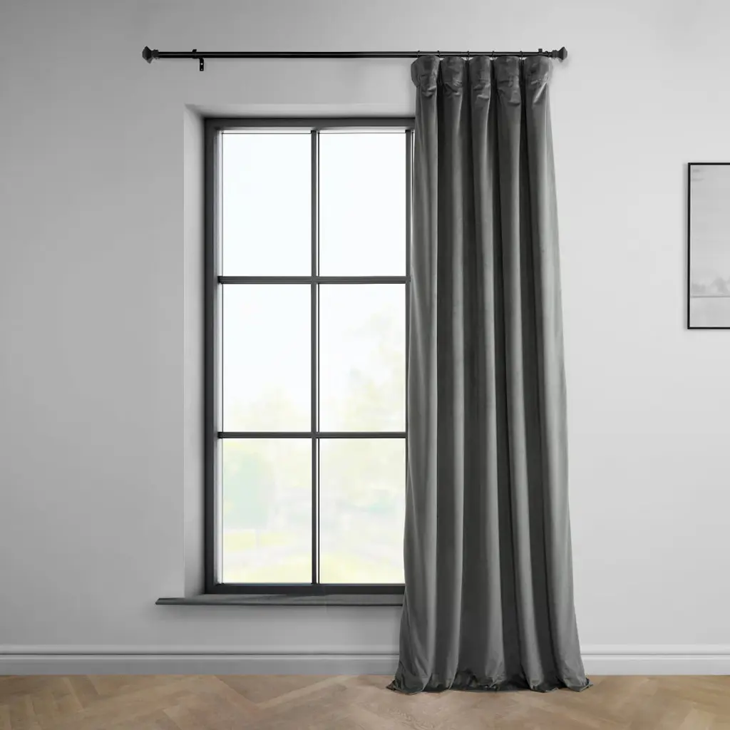 Heritage Plush Velvet Curtain Single Panel, Pepper Grey, 50"x120"