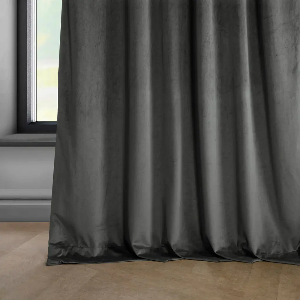 Heritage Plush Velvet Curtain Single Panel, Pepper Grey, 50"x84"
