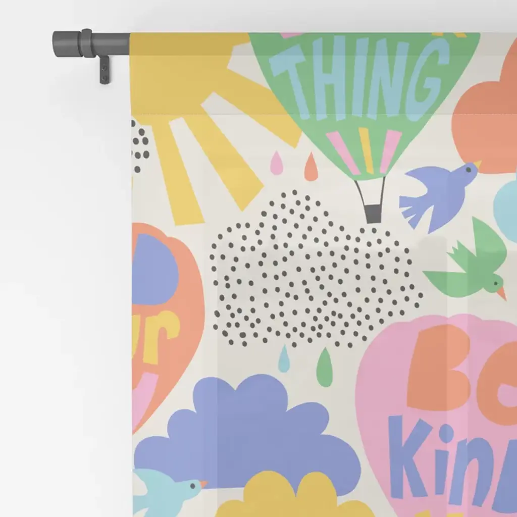 Hot Air Balloons In The Sky - Happy Kids Pattern With Positive Quotes Curtain