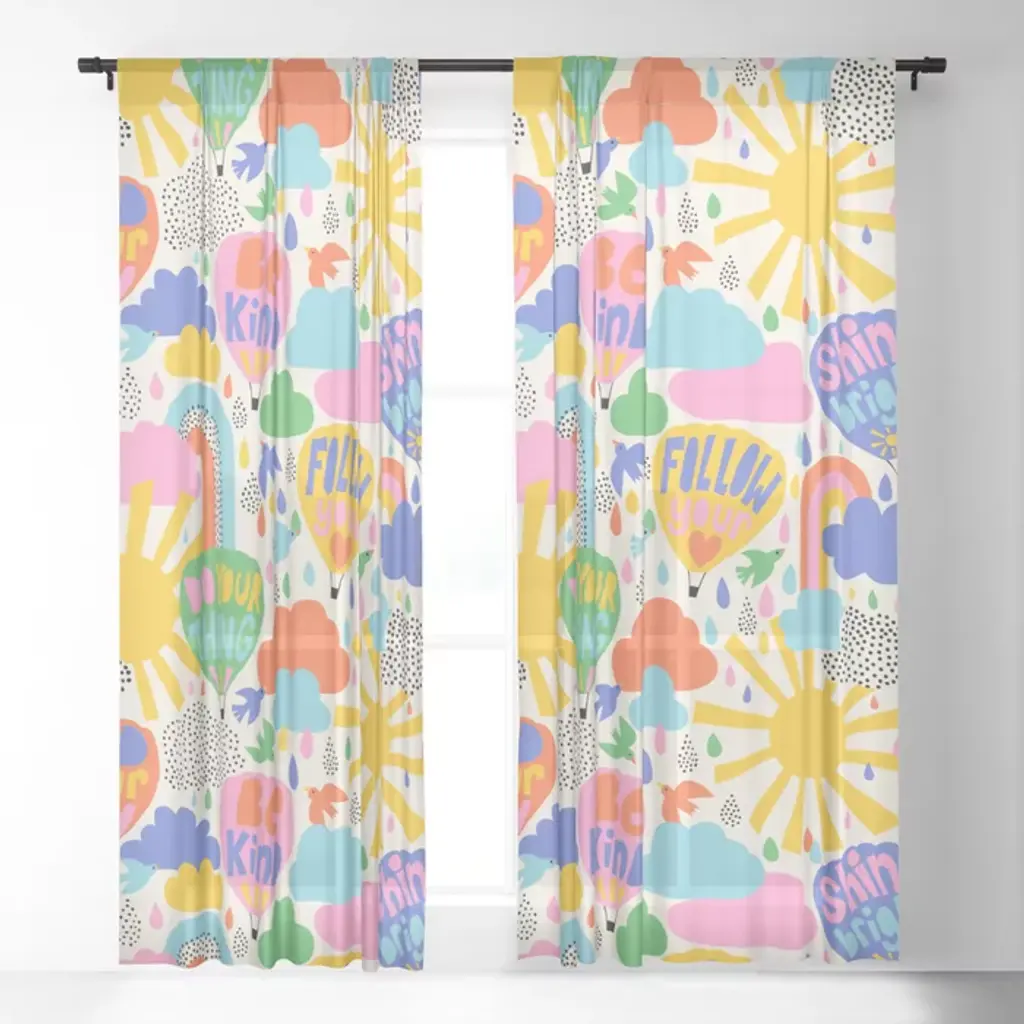 Blackout curtains are crafted with 100% woven polyester with a linen-like texture.Light-Filtering curtains are crafted with 100% mid-weight polyester.Sheer curtains are crafted with 100% lightweight polyester.Single sided print with white on reverse.Available in single or double panel options (double panels feature the same design on both).4" bottom pocket for easy hanging on any curtain rod (please note: artwork will appear upside down on non-patterned designs).Machine washable for easy care.Please note: Color variations may occur between on-site previews, your screen, and the printed fabric.Blackout, Light-Filtering, and Sheer Curtains are easy to care for:Machine wash cold.Use gentle cycle.Tumble dry low.SHIPPING: Items are made to order and typically ship within 3-4 business days. Click here for more information about delivery options.RETURNS: Return requests can be made within 30 days of your item(s) delivery. Click here for more information on returns.